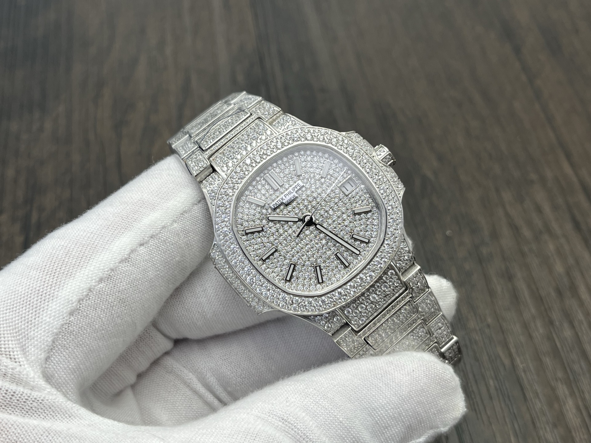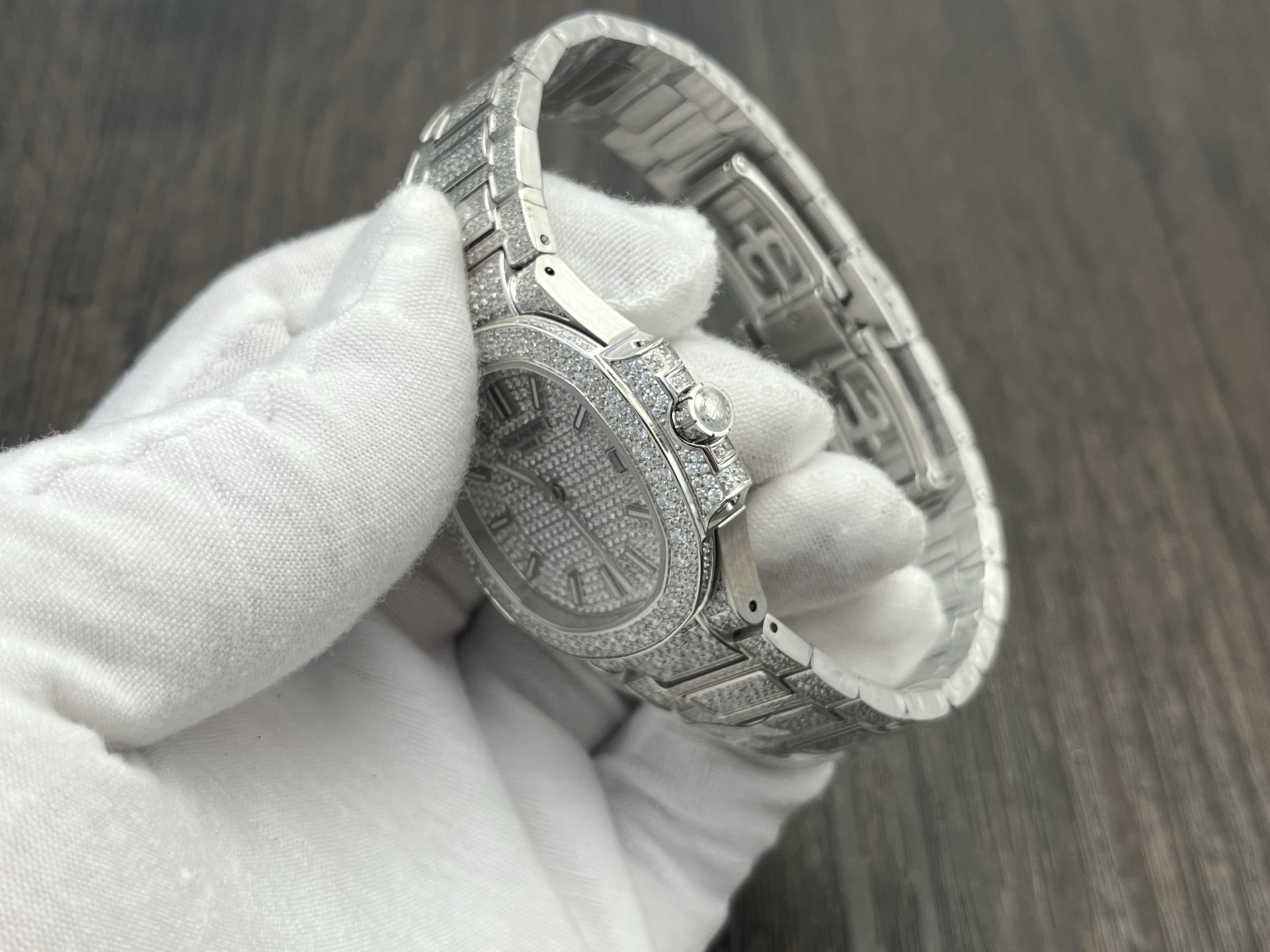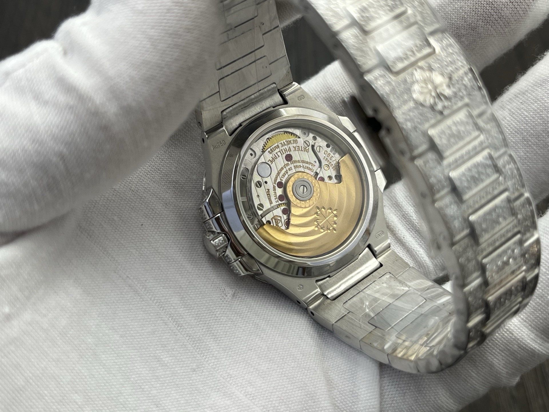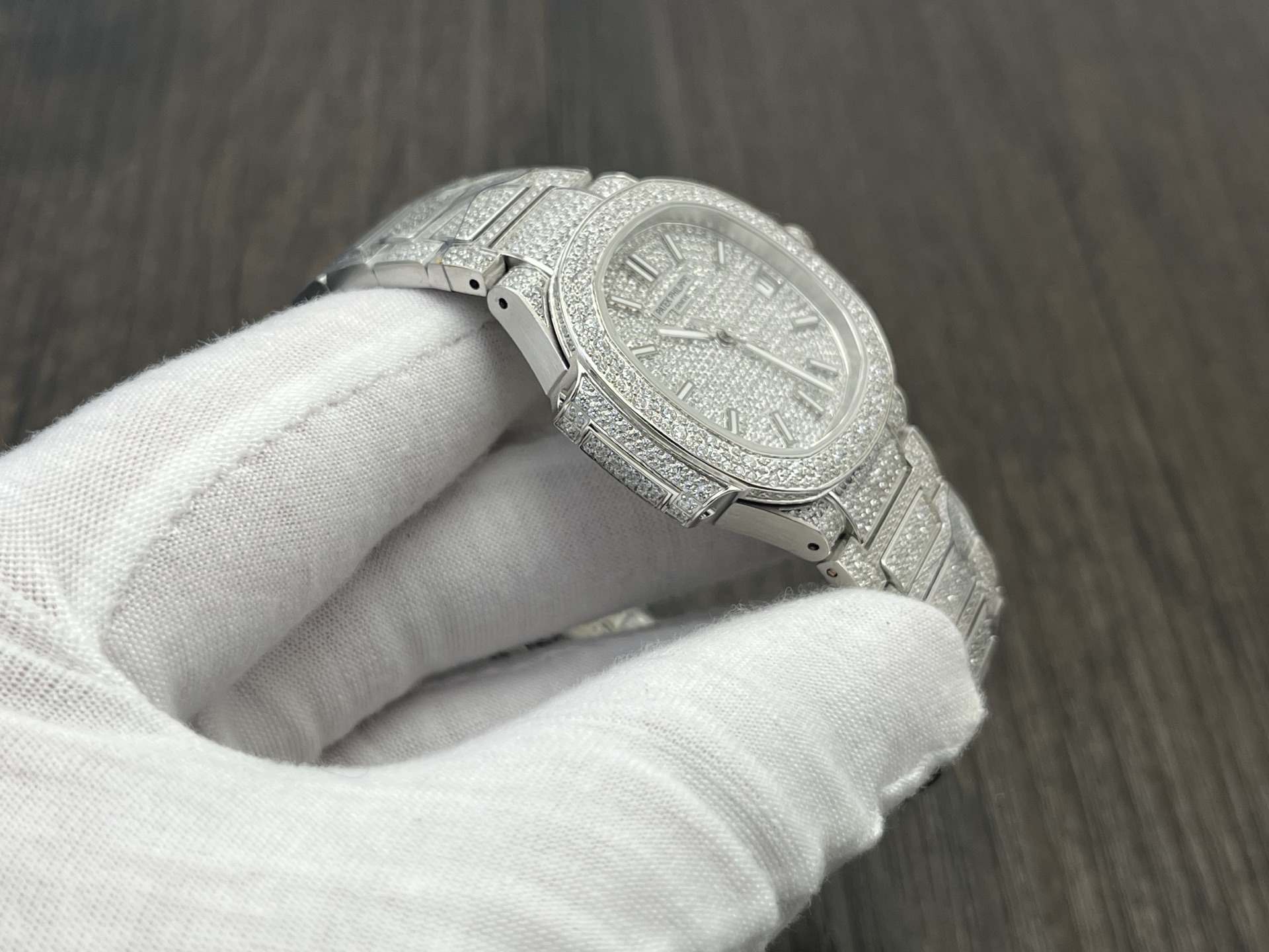 Patek Philippe Nautilus Ladies Automatic 35.2mm Full Diamond White Gold