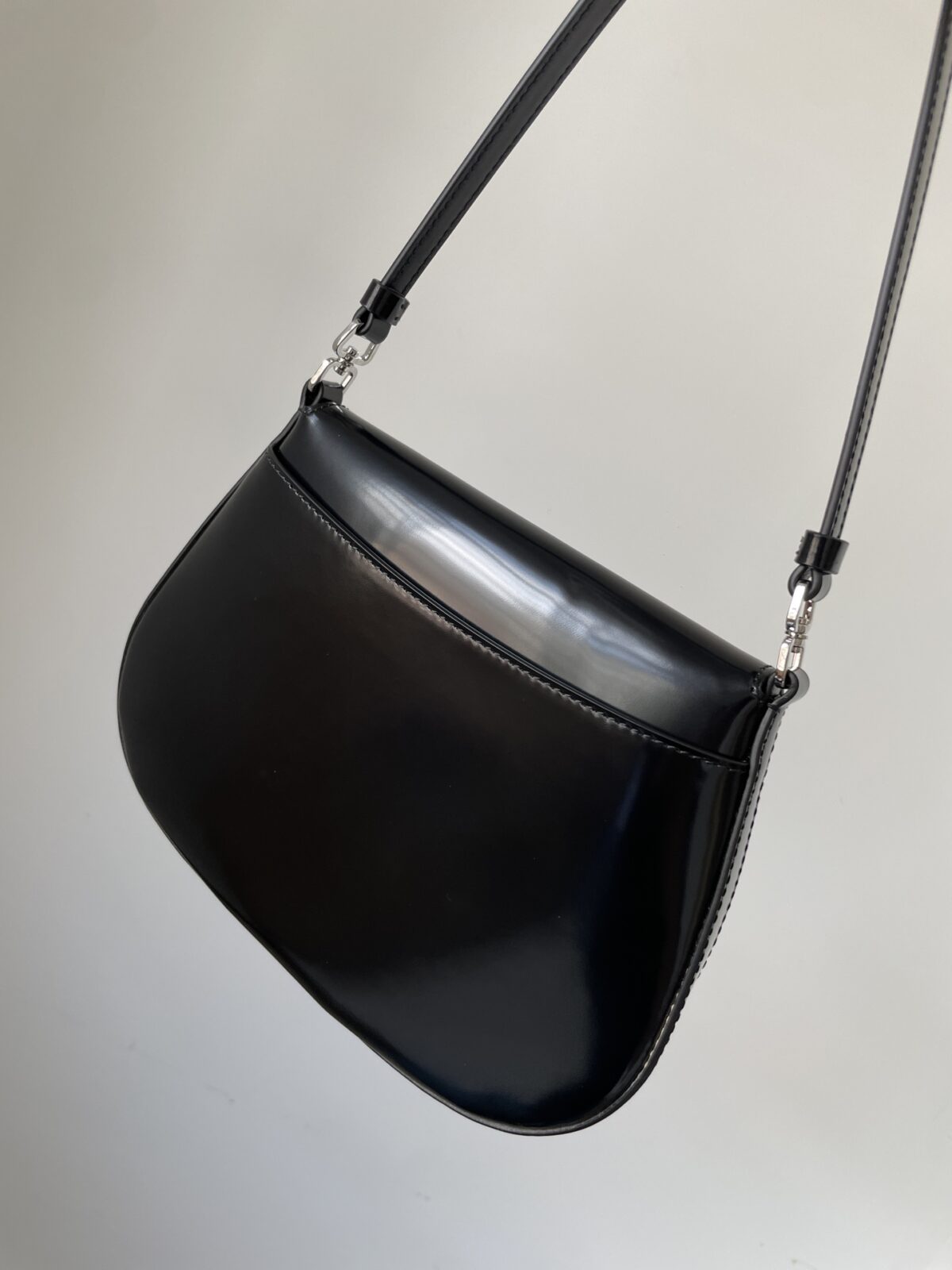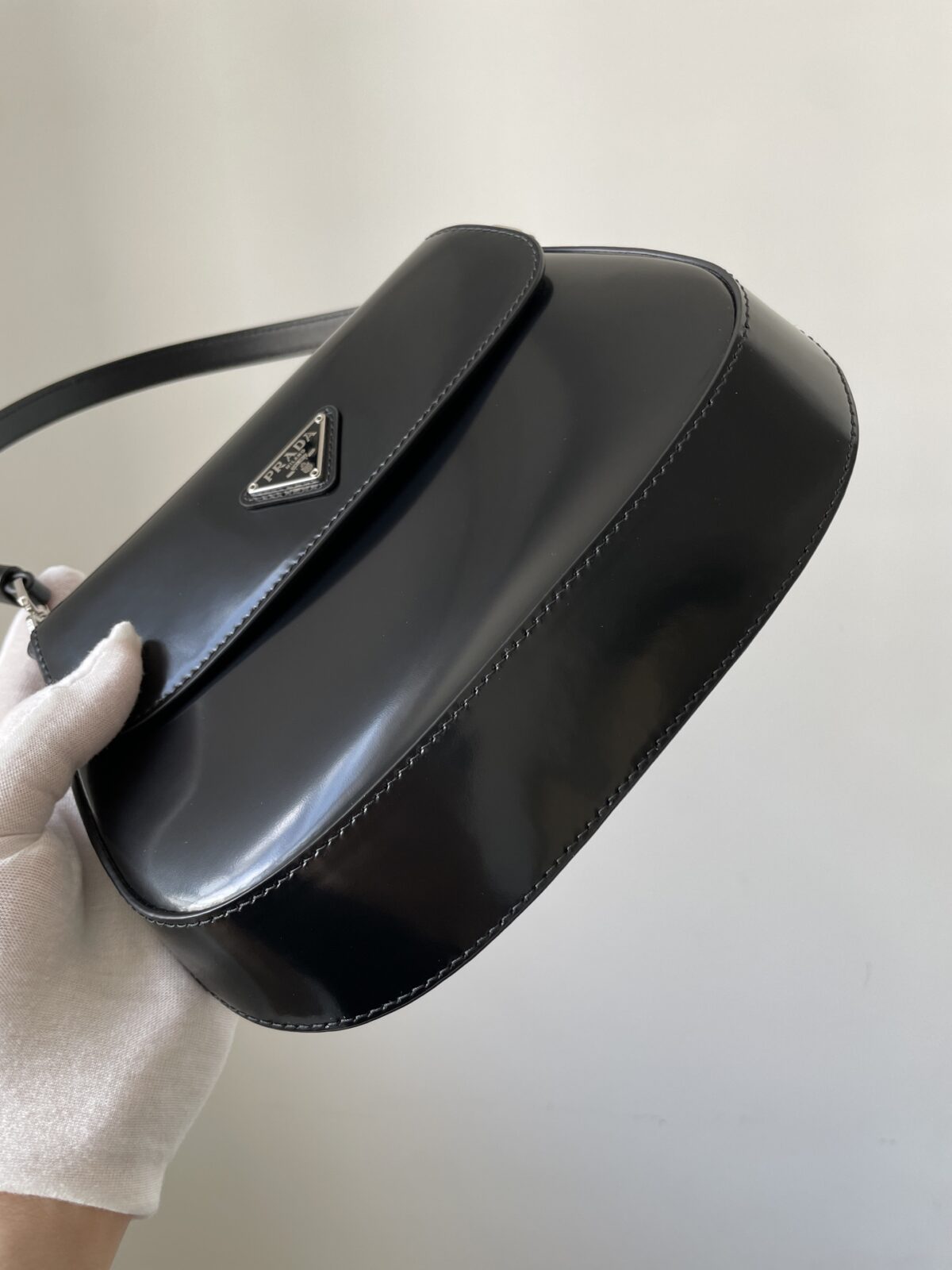 PRADA Cleo Glossy Leather Shoulder Bag Black