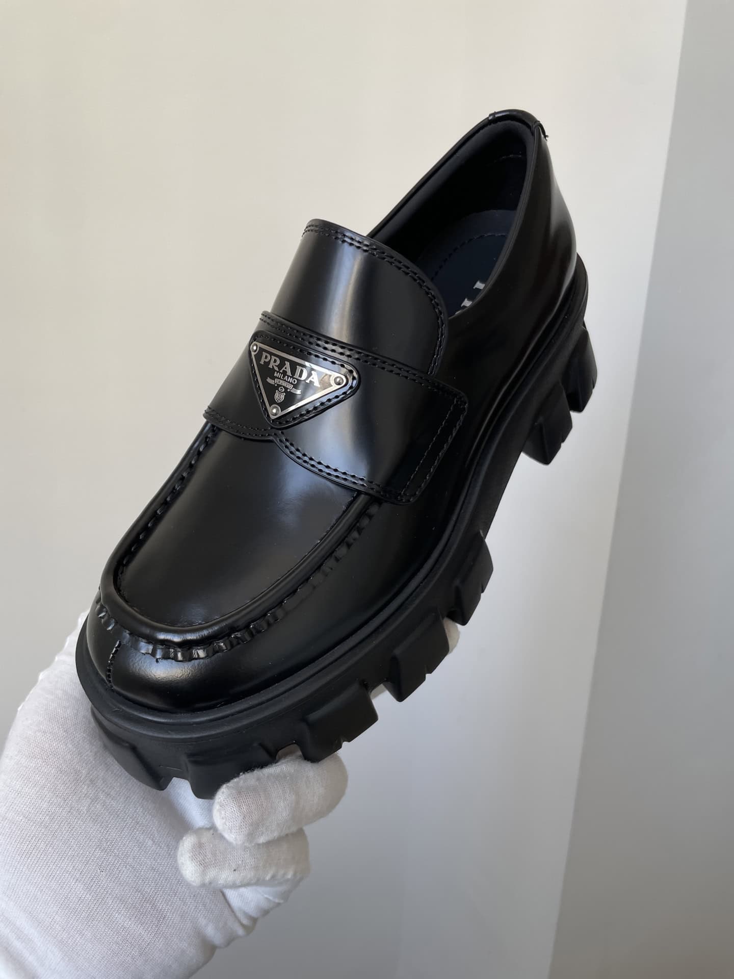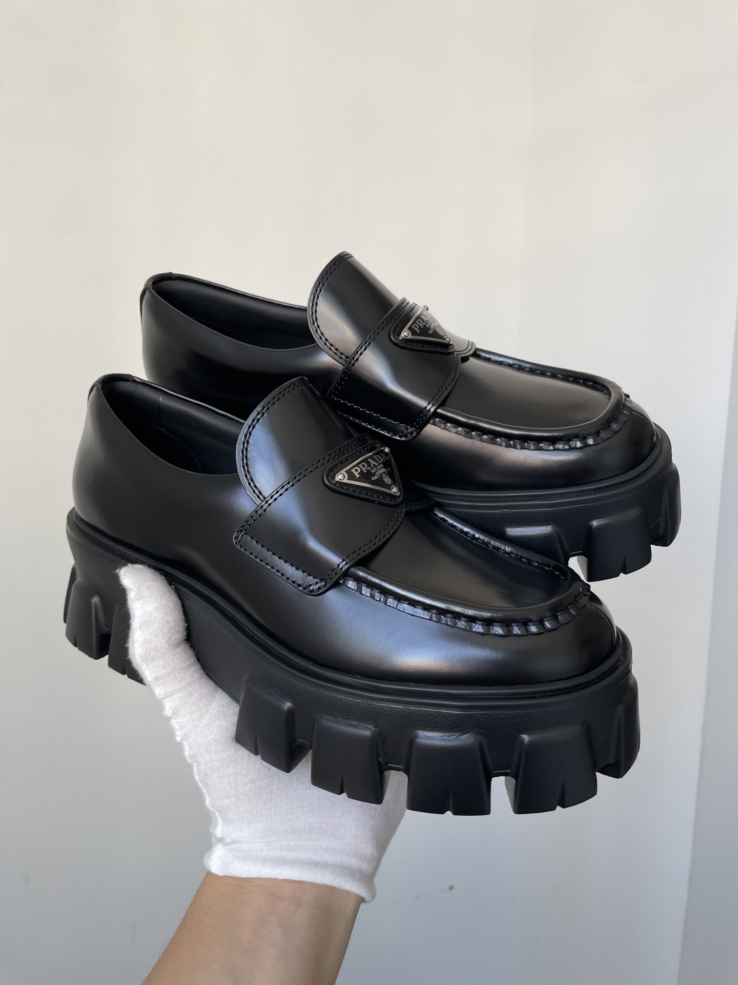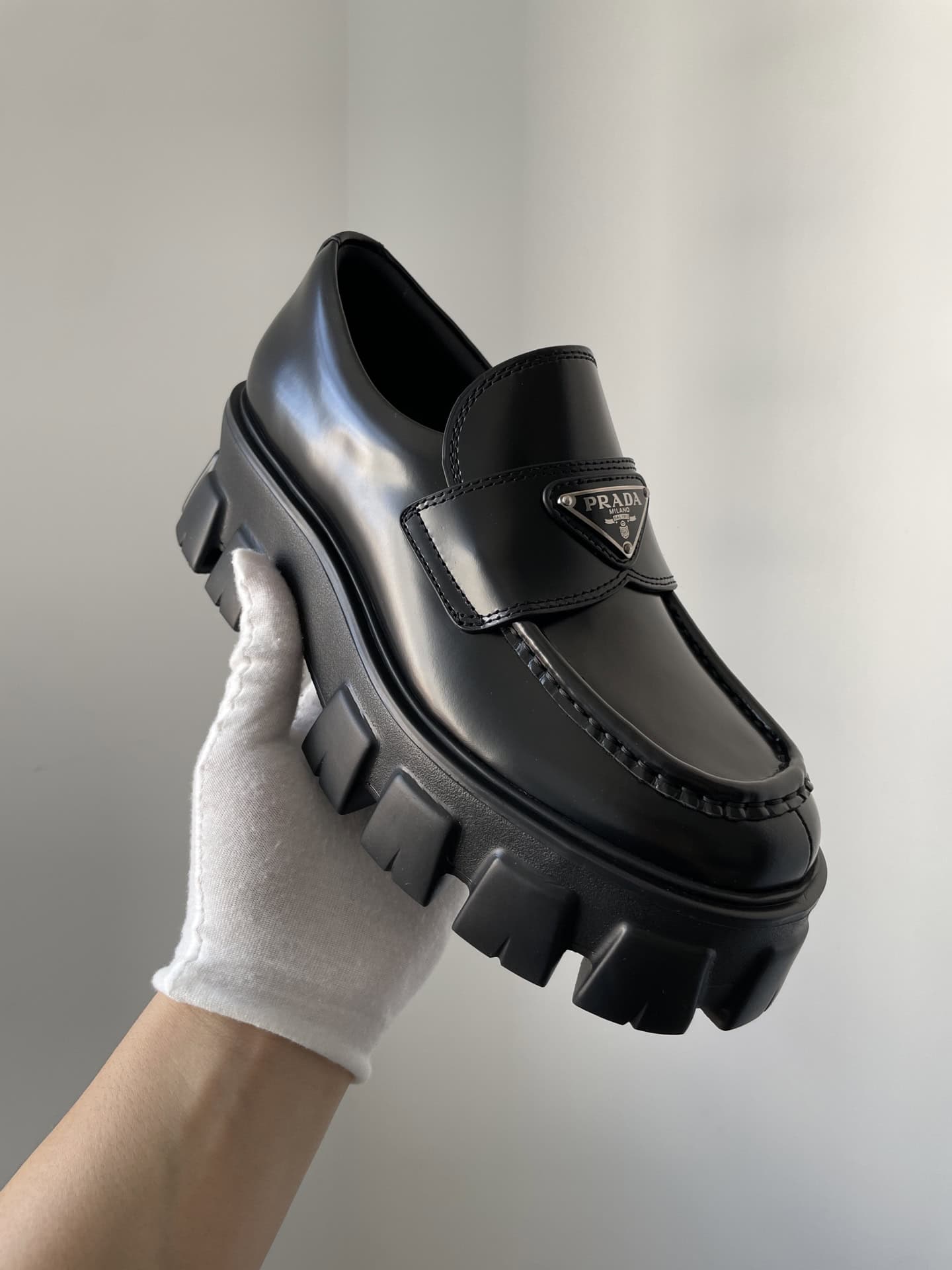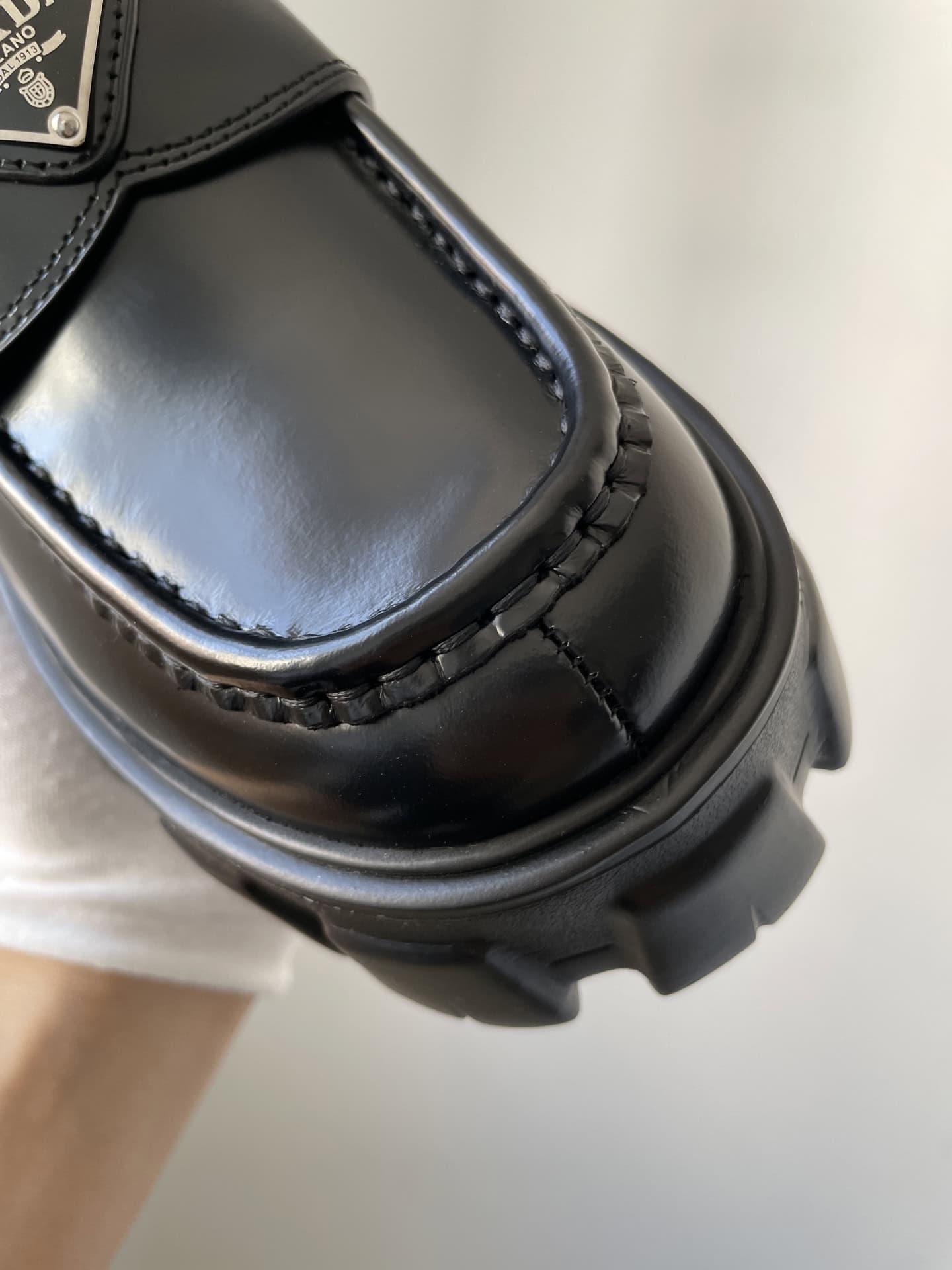 Prada Monolith Full Grain Leather Platform Loafers Women Black