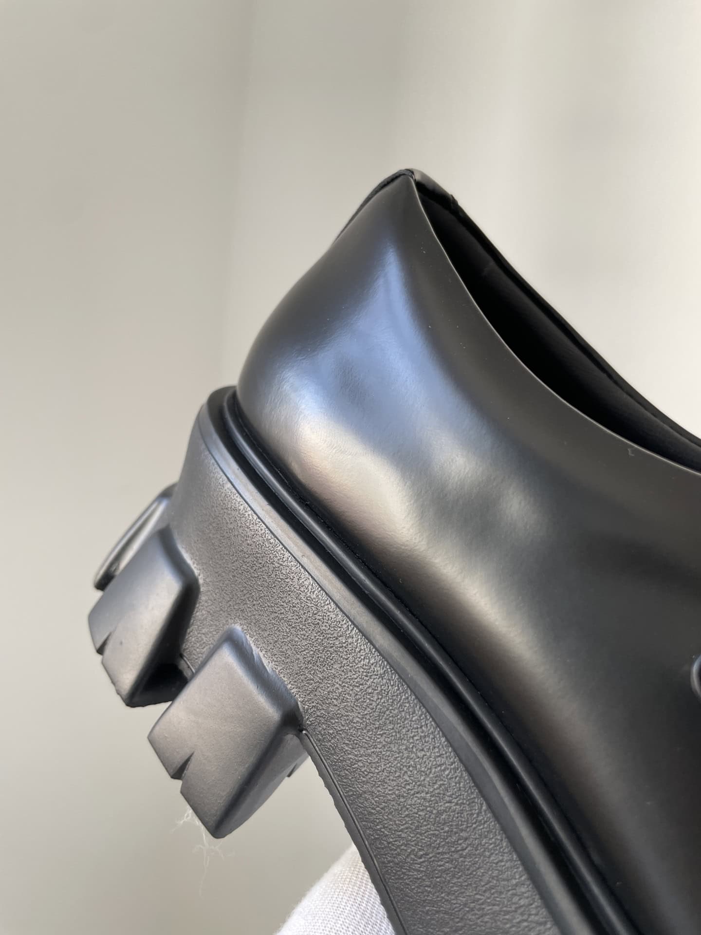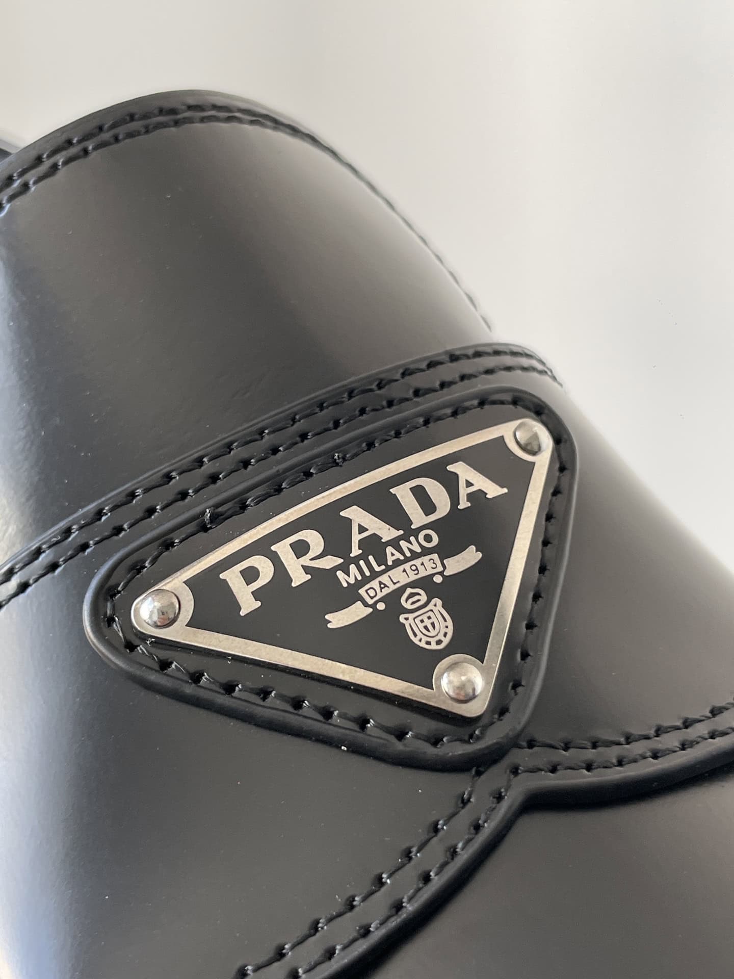 Elegant black Prada shoes combining luxury craftsmanship and modern design.
