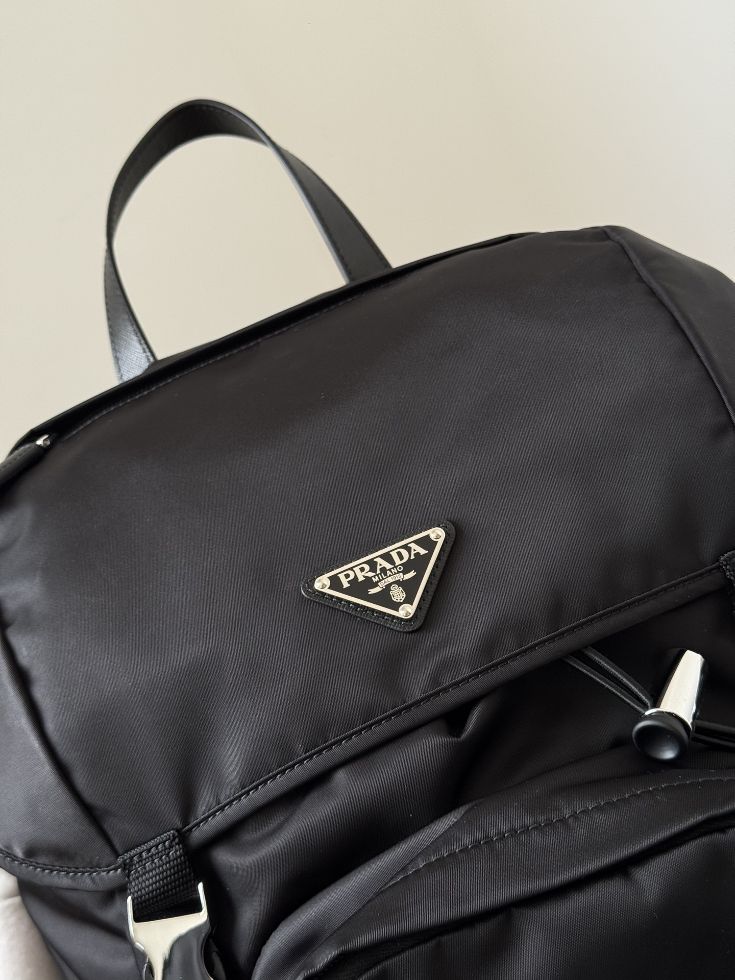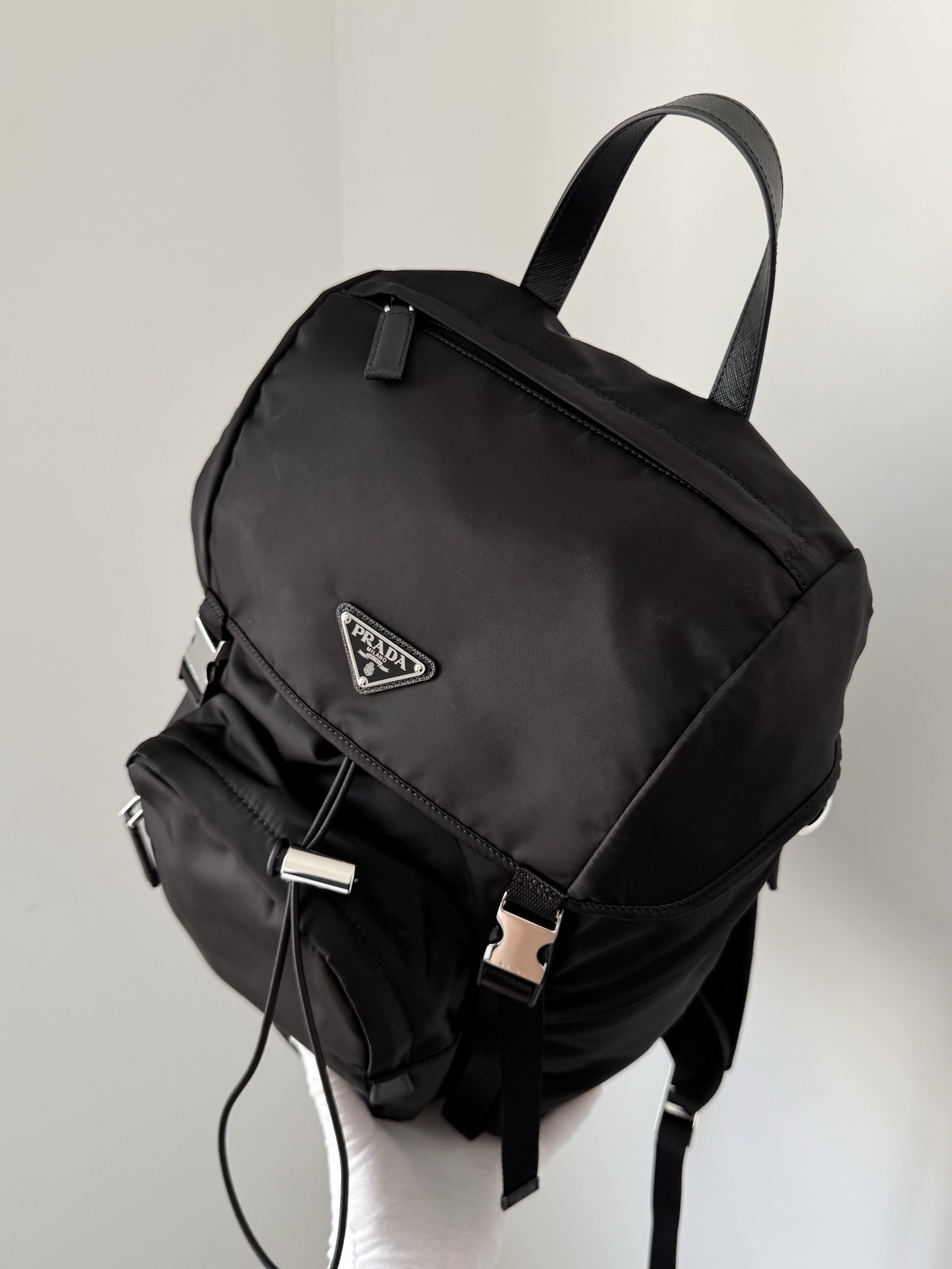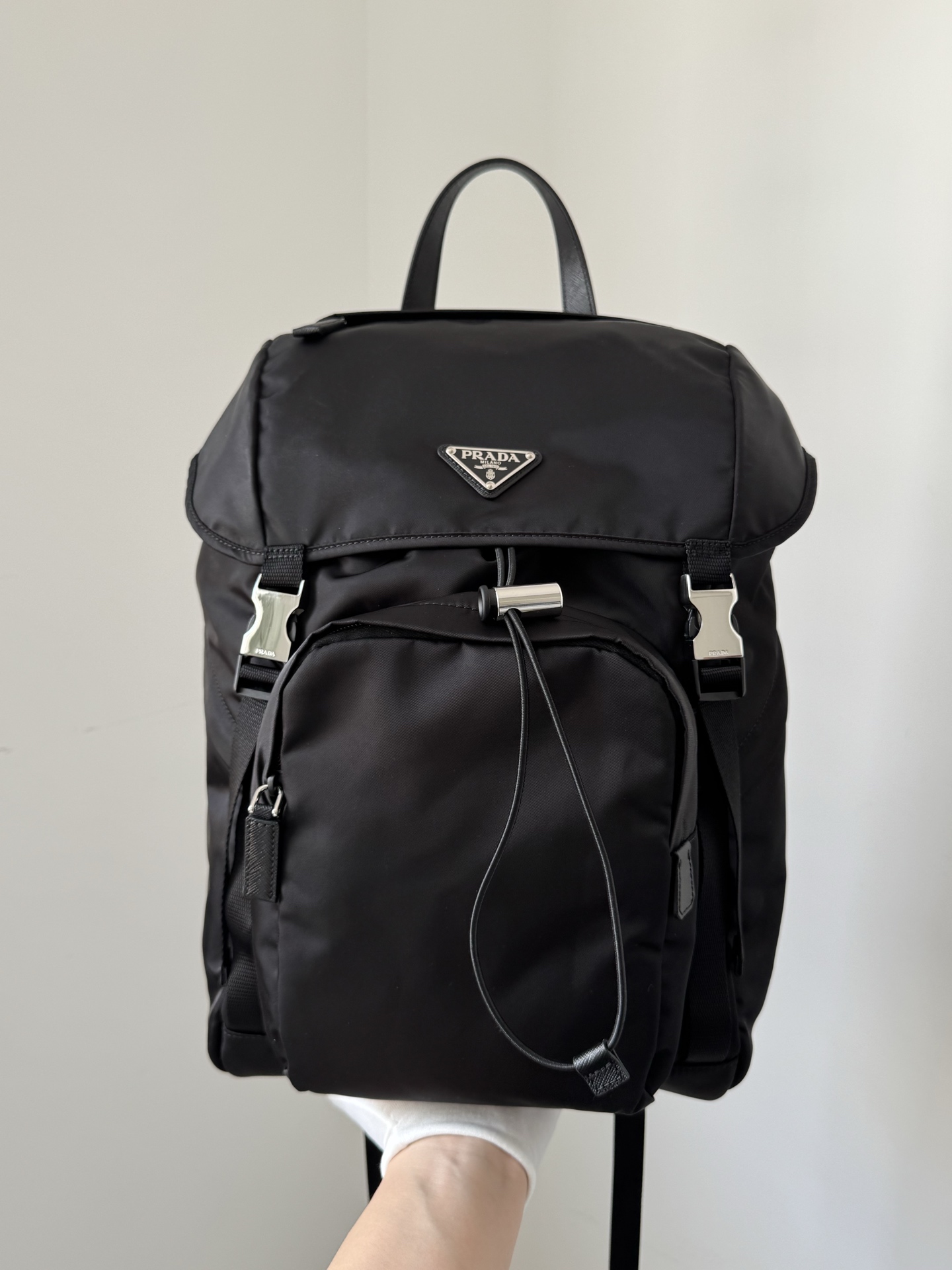 Prada Re-Nylon Drawstring Buckle Backpack Black