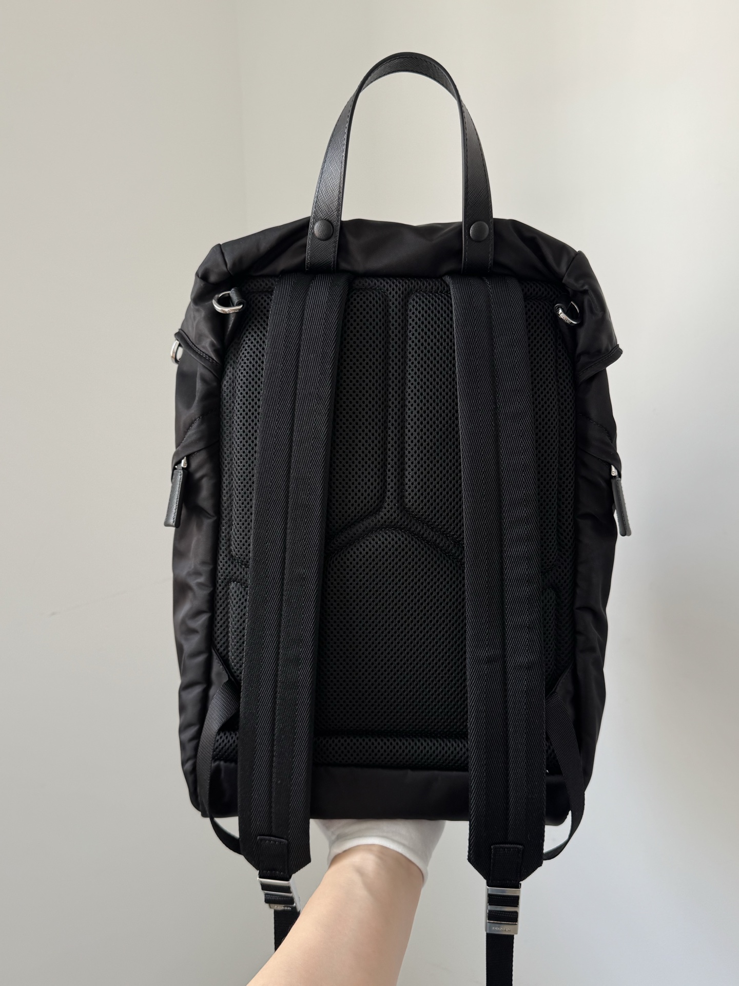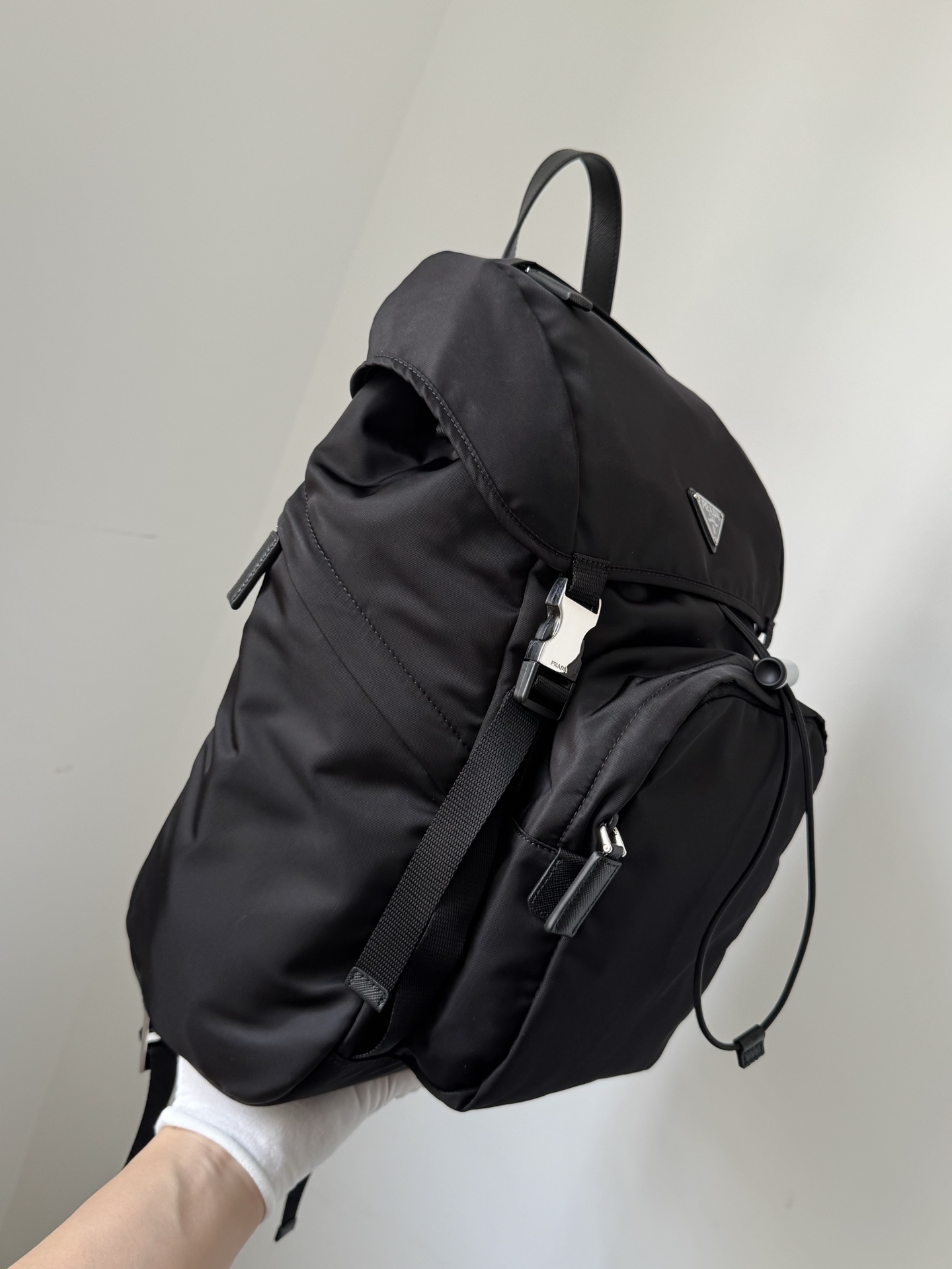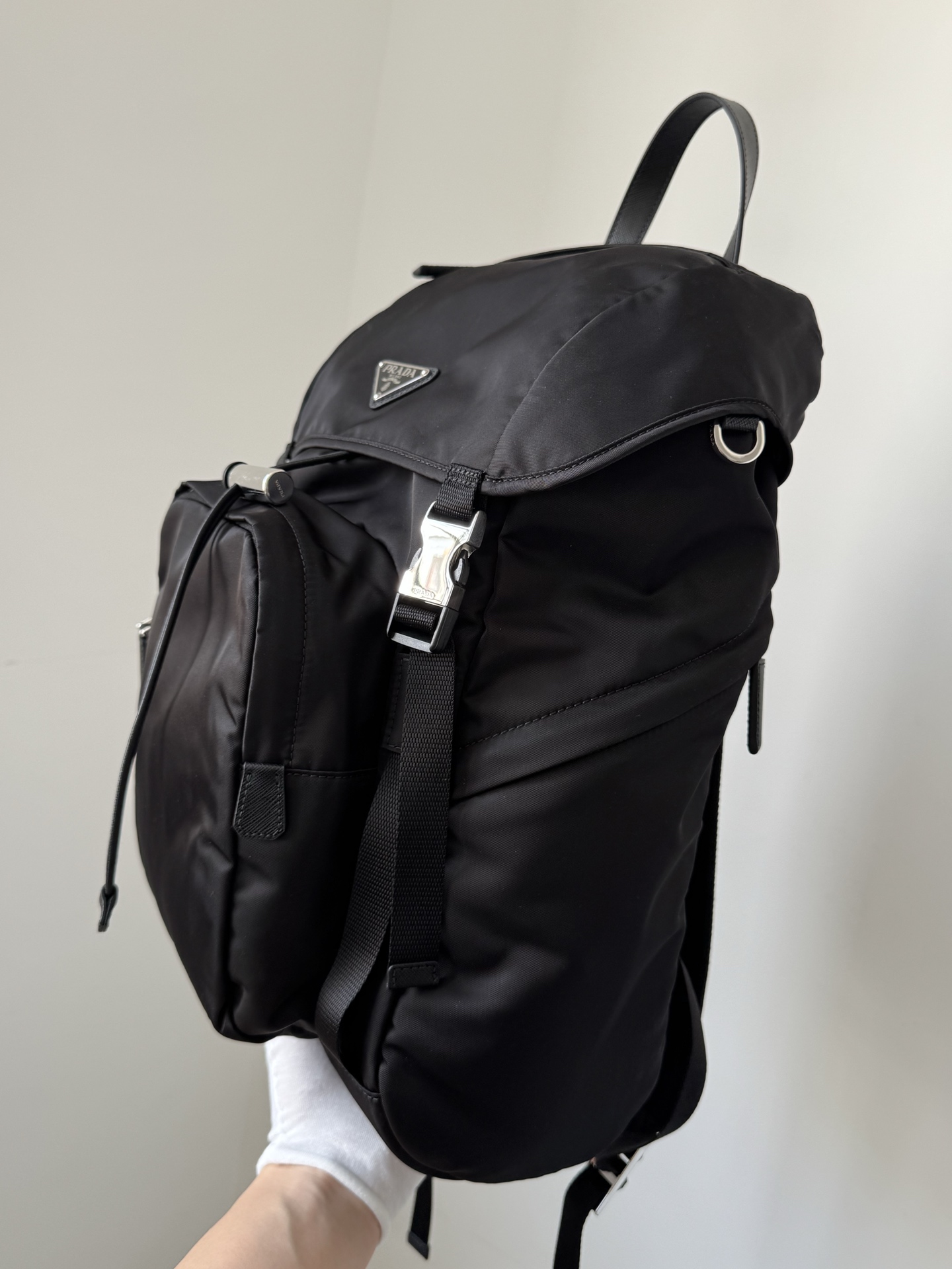 Prada Re-Nylon Drawstring Buckle Backpack Black