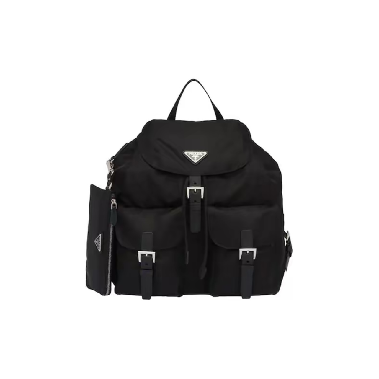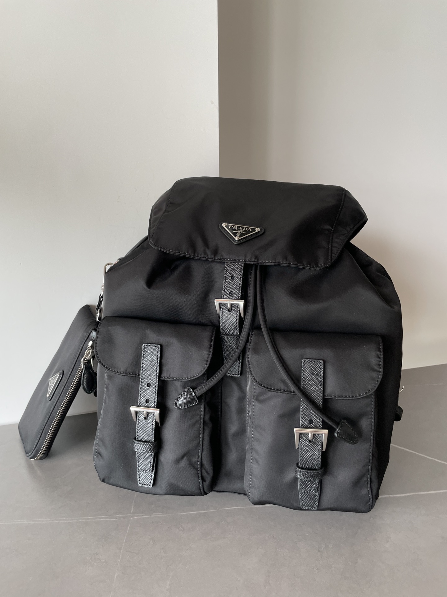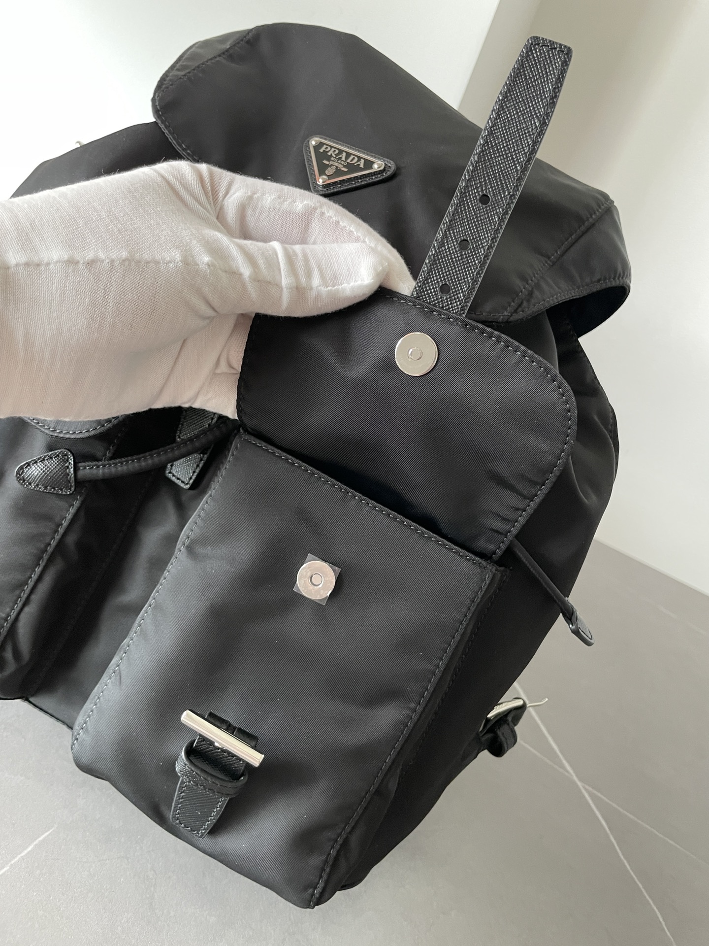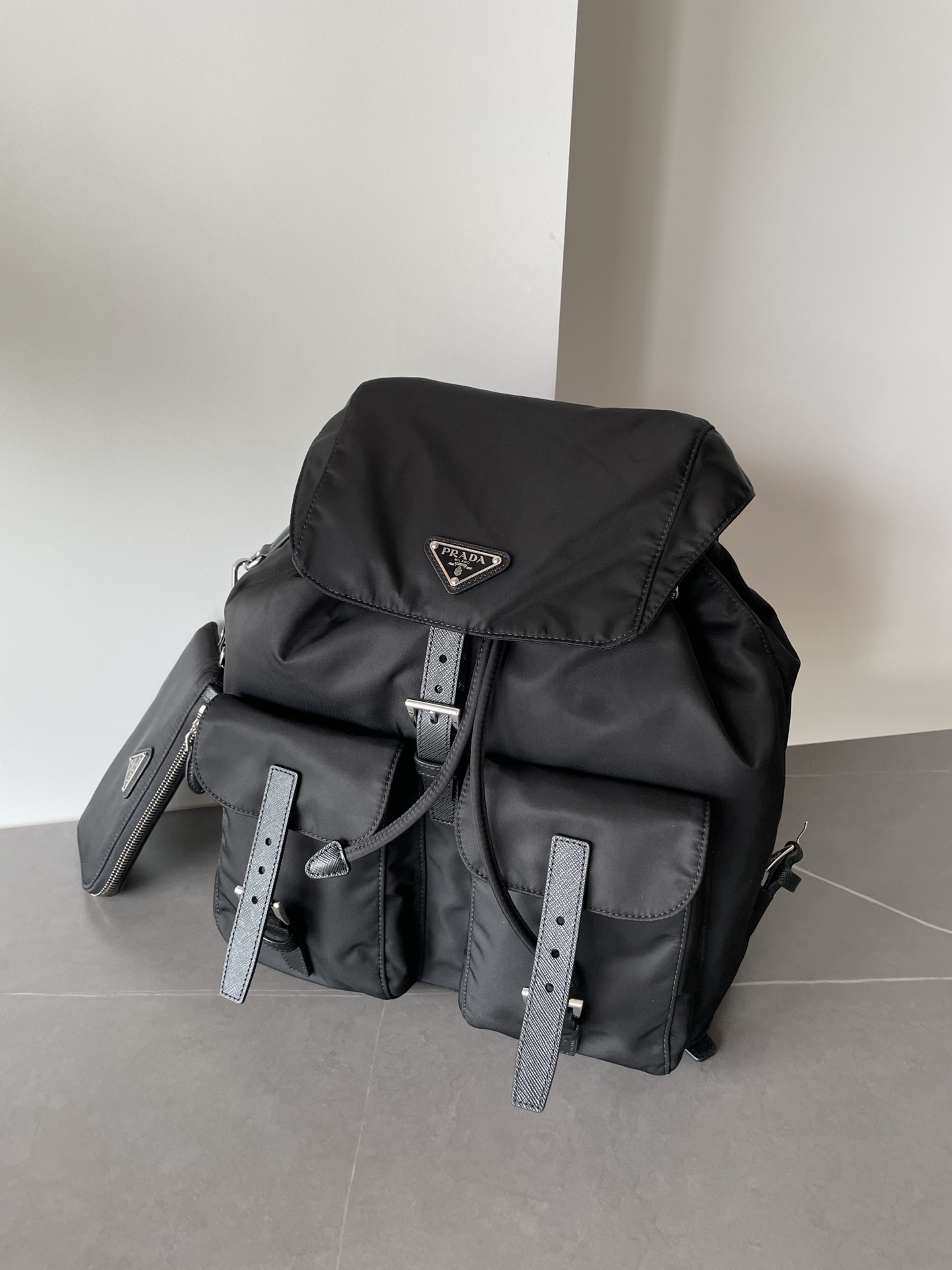 PRADA Re-Nylon & Saffiano Leather Flap Backpack Black