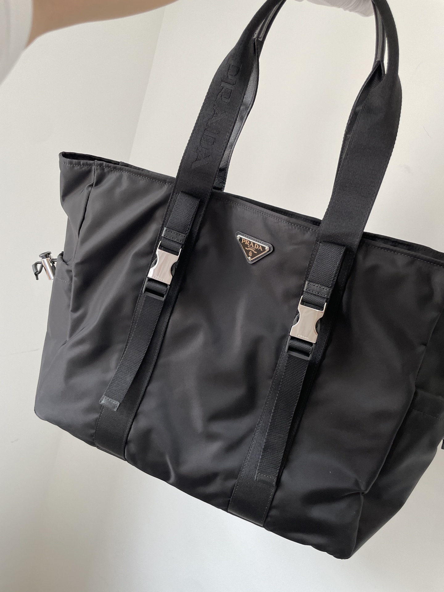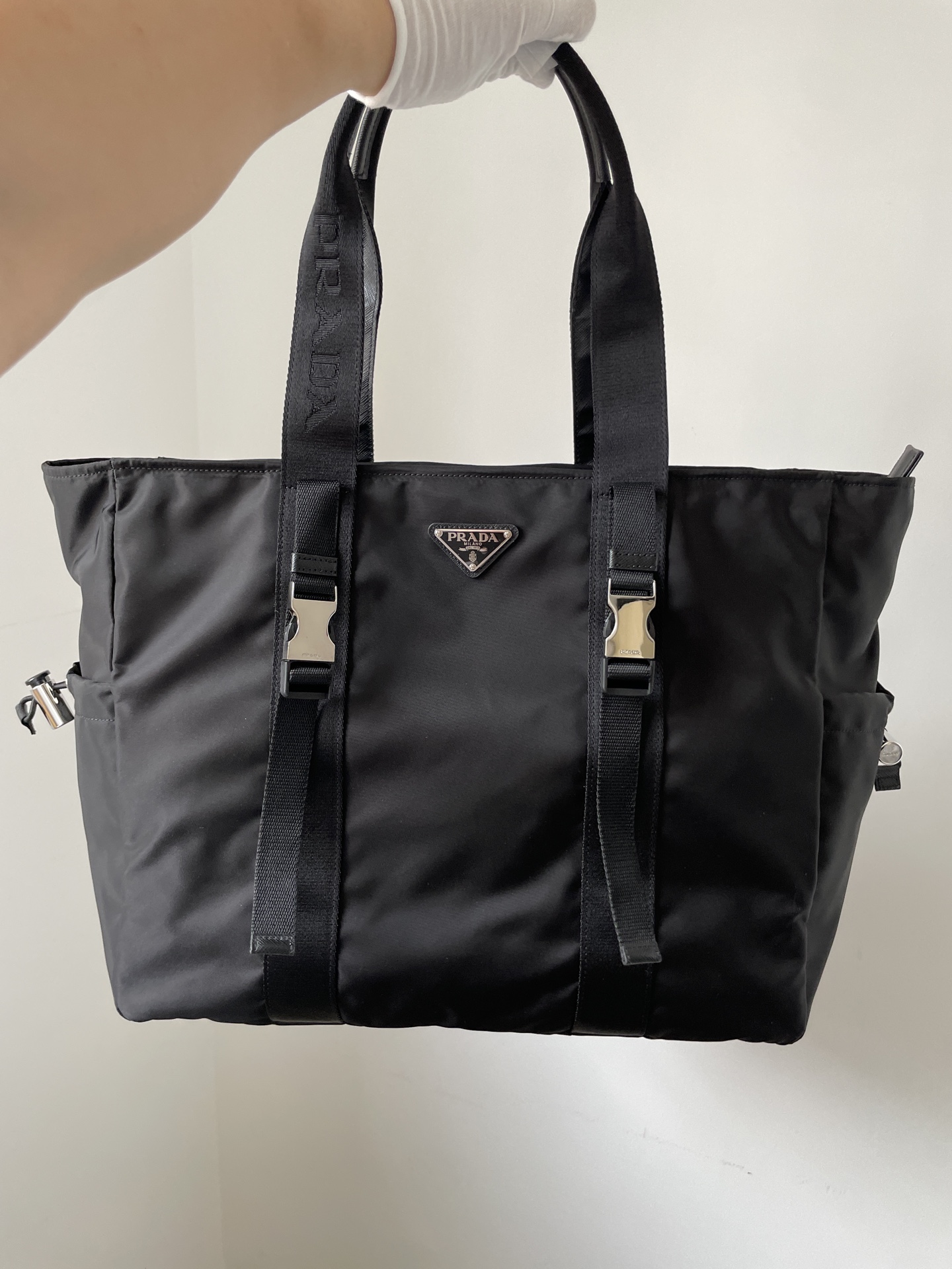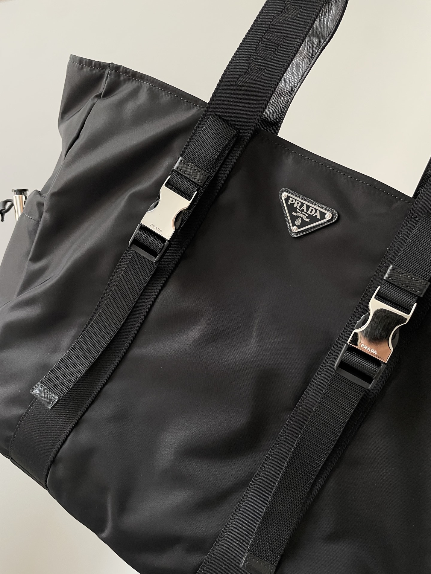 The PRADA Re-Nylon & Saffiano Leather Tote Bag represents the perfect balance between modern practicality and timeless luxury. Combining durable Re-Nylon fabric with elegant Saffiano leather details, this spacious tote embodies Prada’s refined craftsmanship and eco-conscious philosophy.