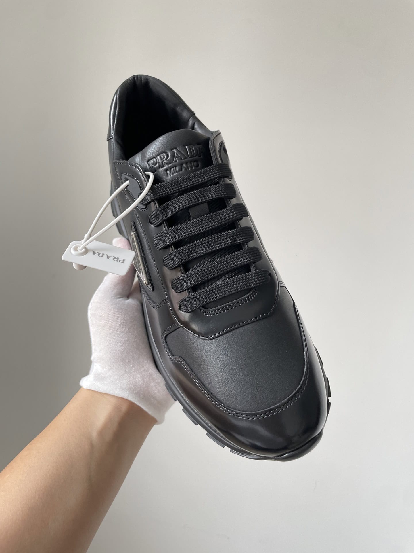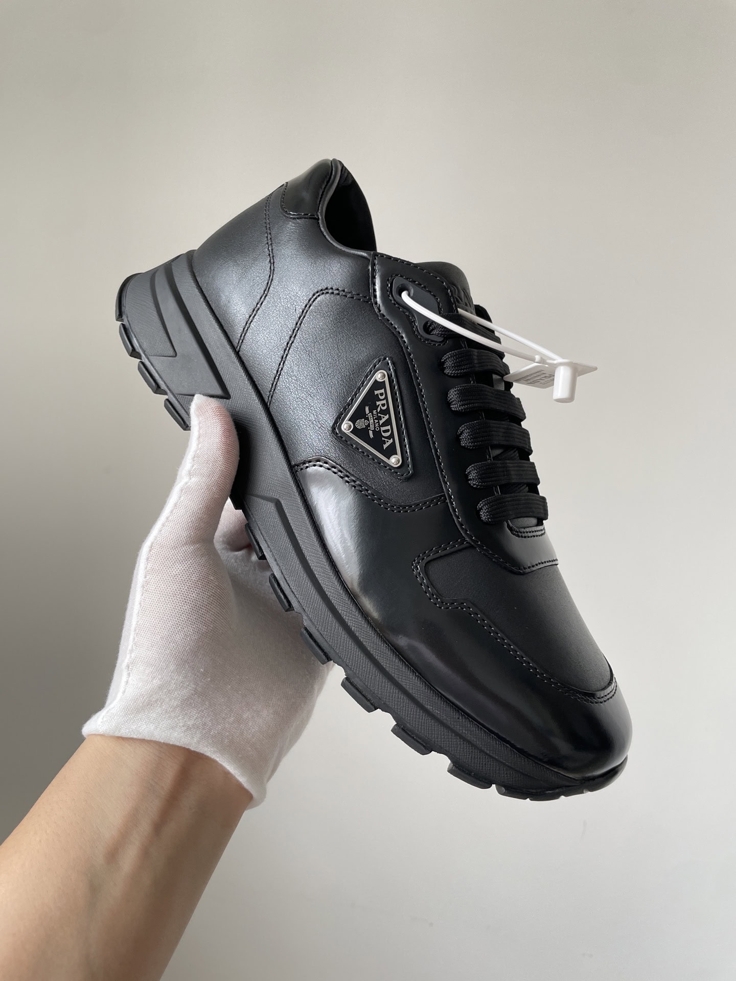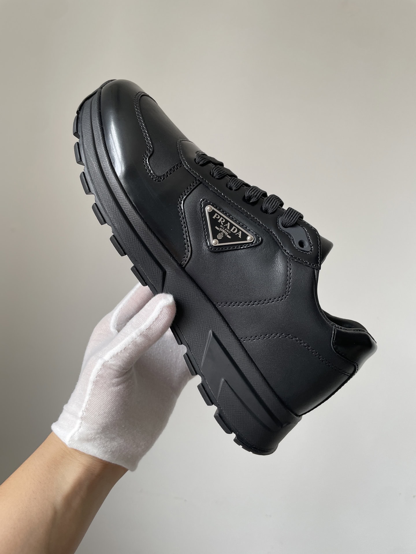 Prada Triangle Logo Leather Low-Top Casual Sneakers Men Black crafted from premium materials with refined detailing, offering exceptional comfort and timeless elegance perfect for any occasion.