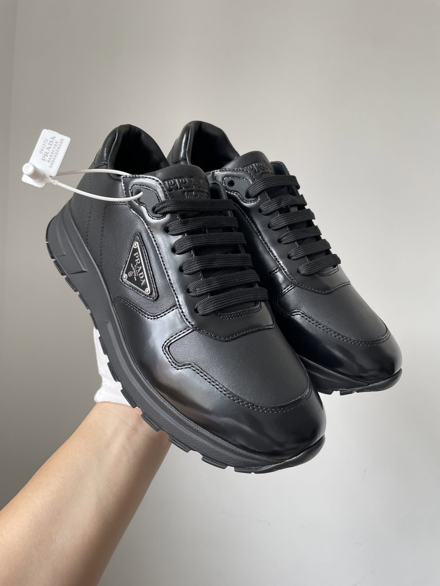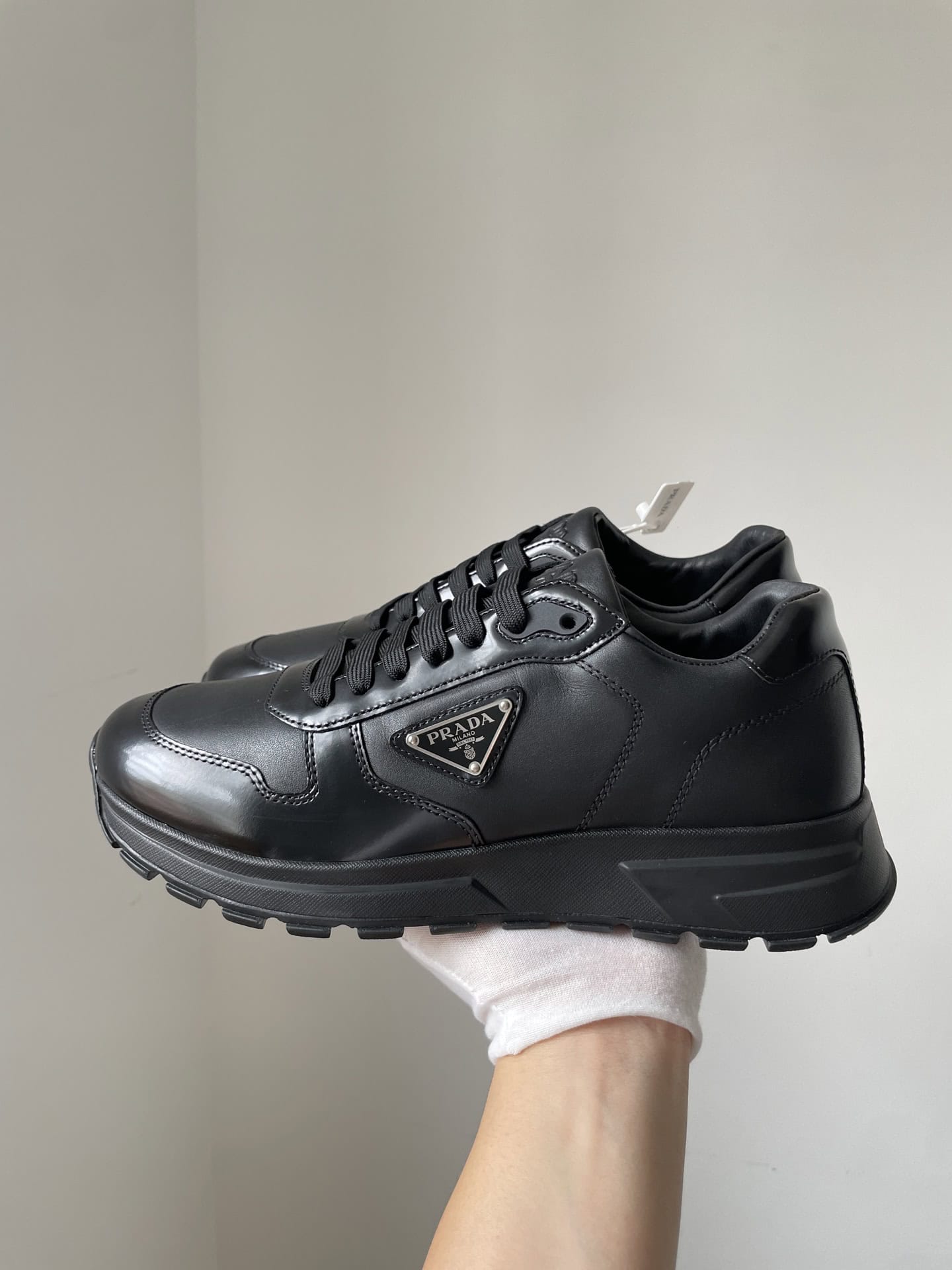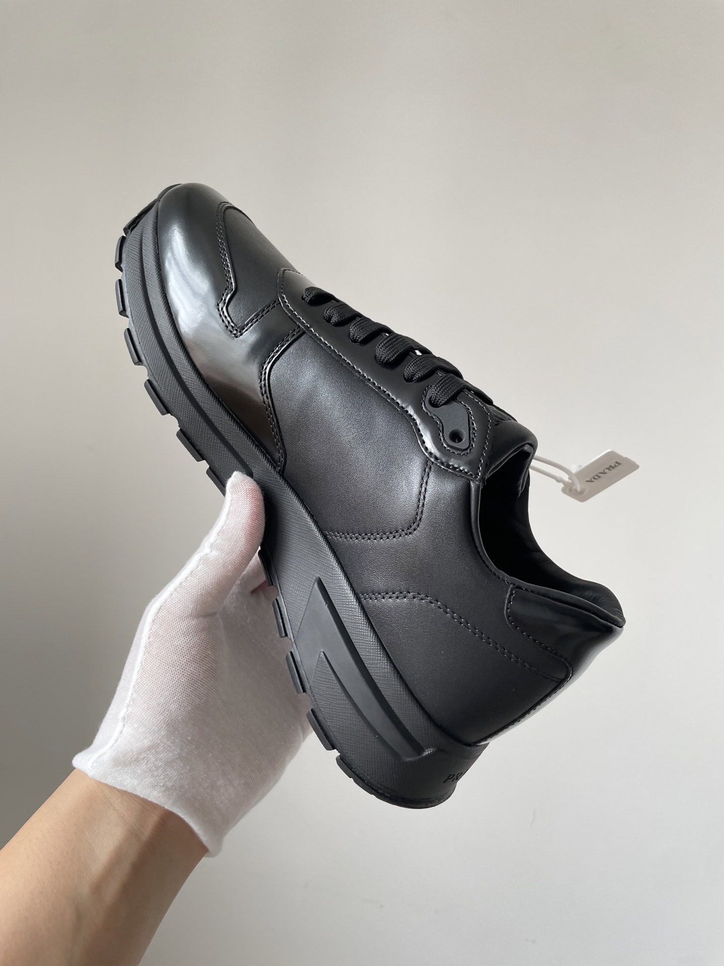 Prada Triangle Logo Leather Low-Top Casual Sneakers Men Black crafted from premium materials with refined detailing, offering exceptional comfort and timeless elegance perfect for any occasion.