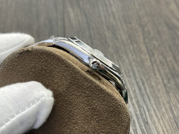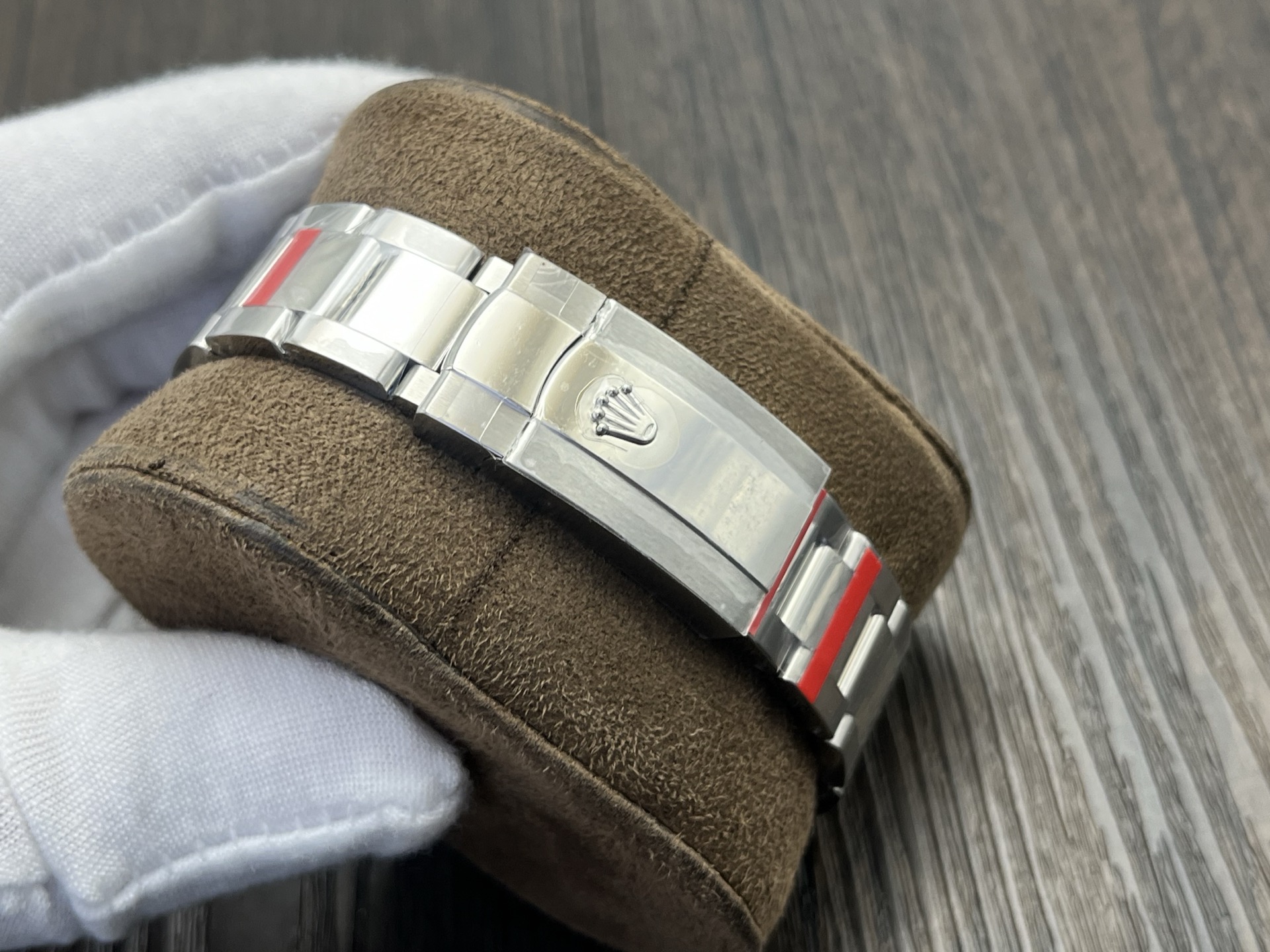 2⃣ Entire watch crafted from 904L Oystersteel with ergonomic case design for maximum comfort.