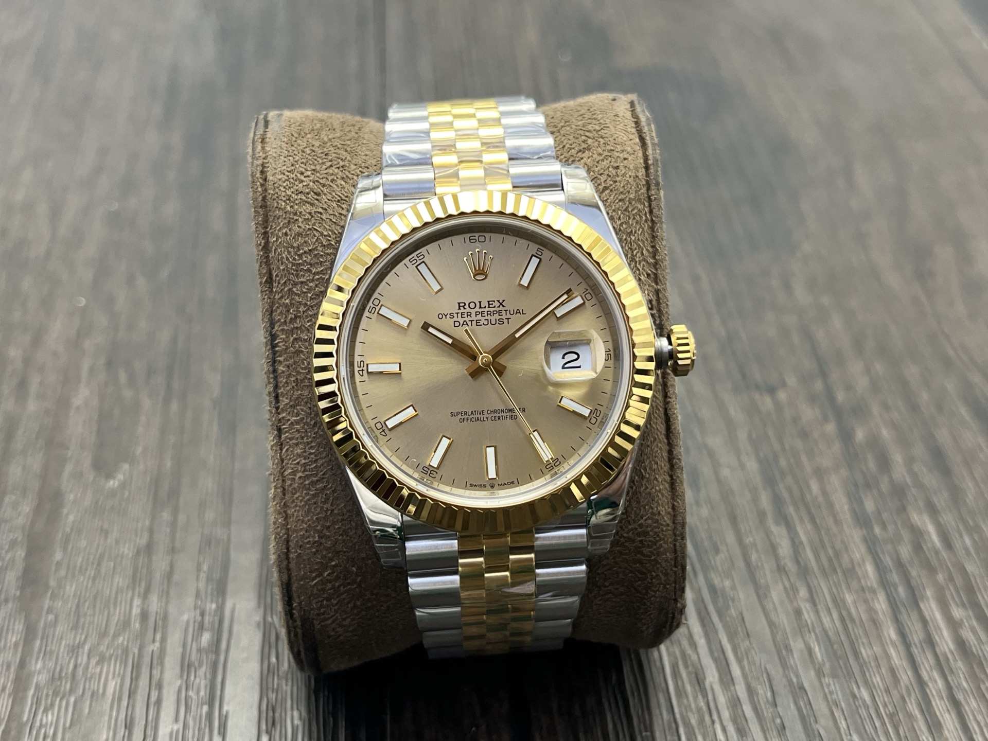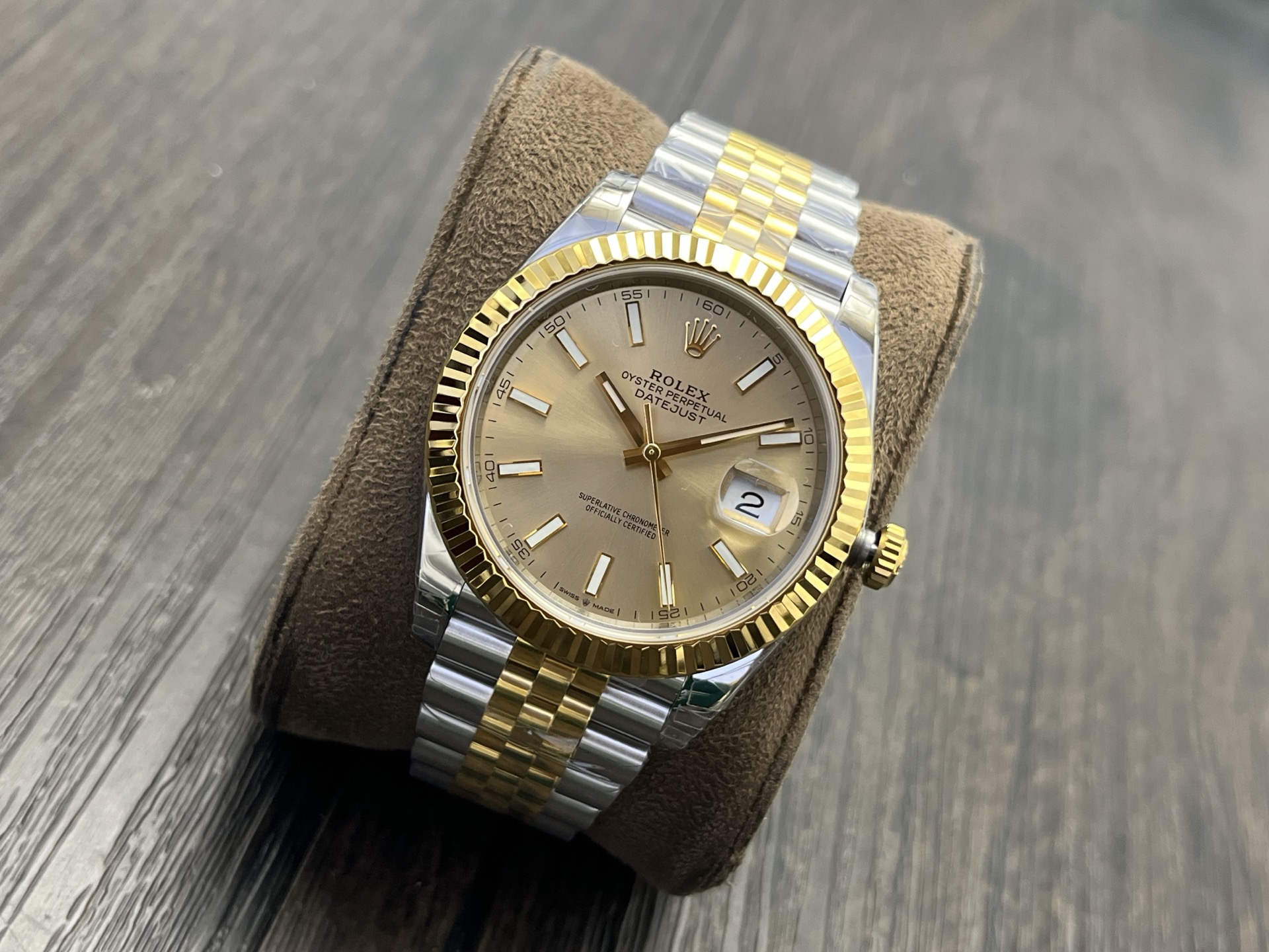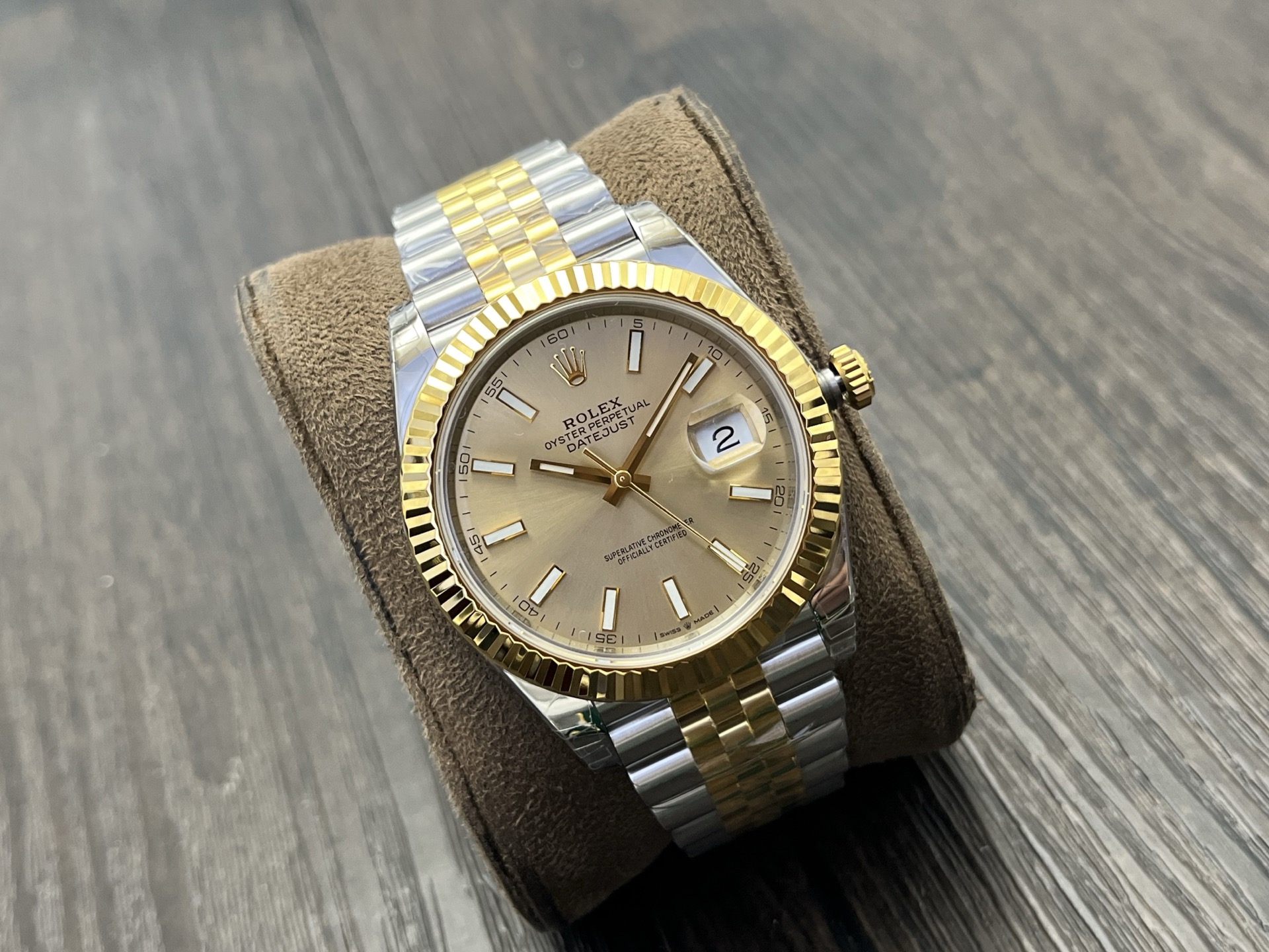 Rolex Datejust 41mm Gold Dial – VS Factory 3235 automatic movement, 72h power reserve, sapphire crystal, Oystersteel case, Swiss luminous markers.