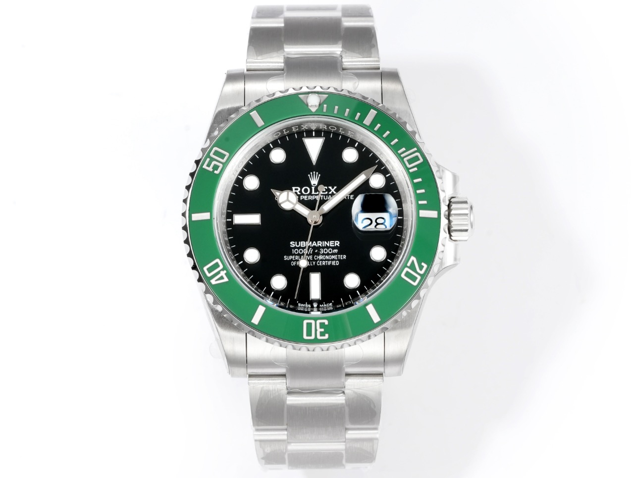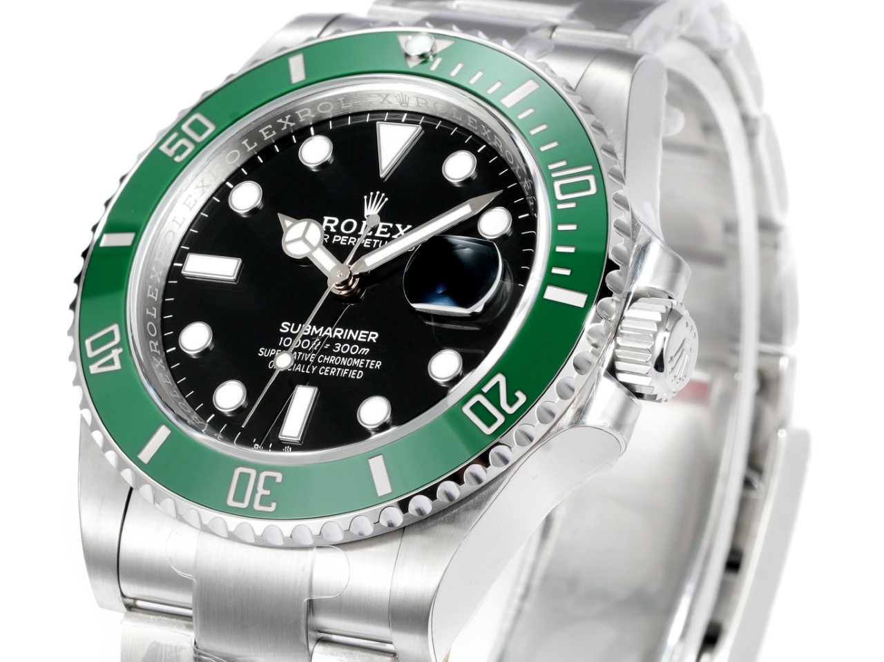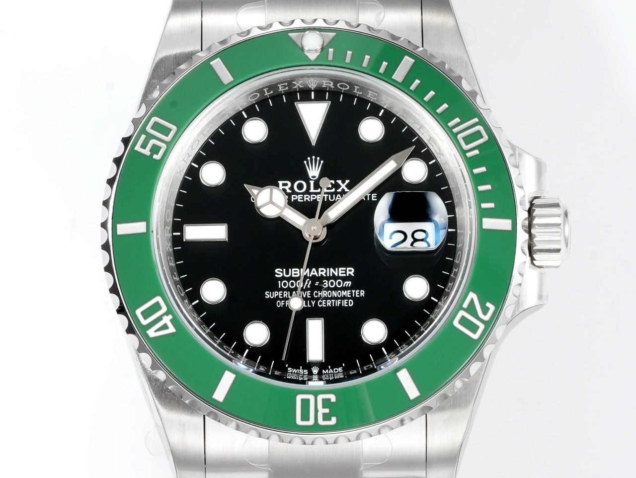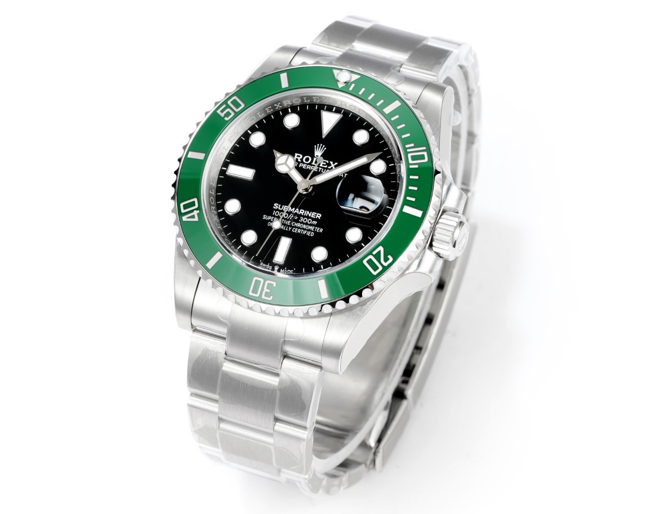 Rolex Submariner 41mm Black dial with Oystersteel case and 300 m water resistance.