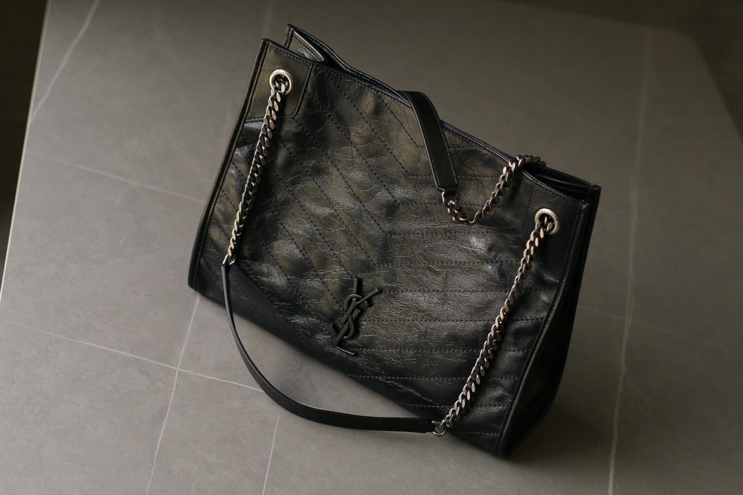 SAINT LAURENT YSL Niki Large Vintage Calfskin Tote Bag Black