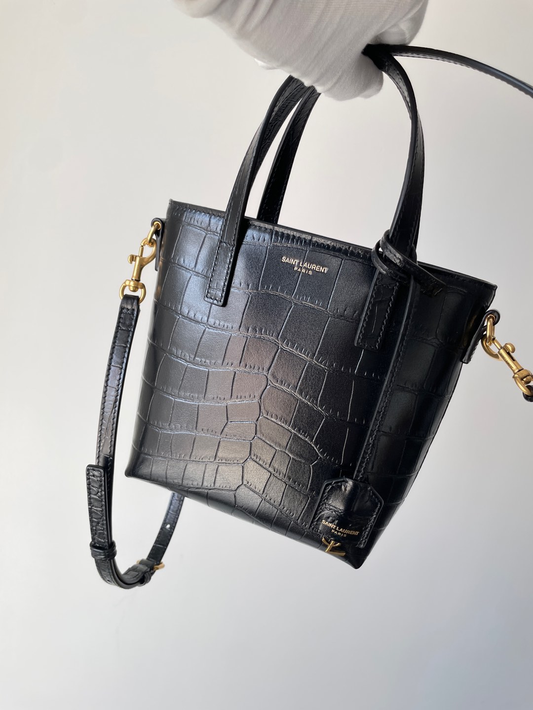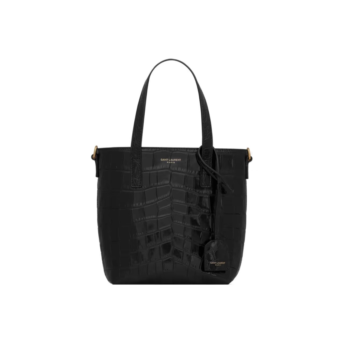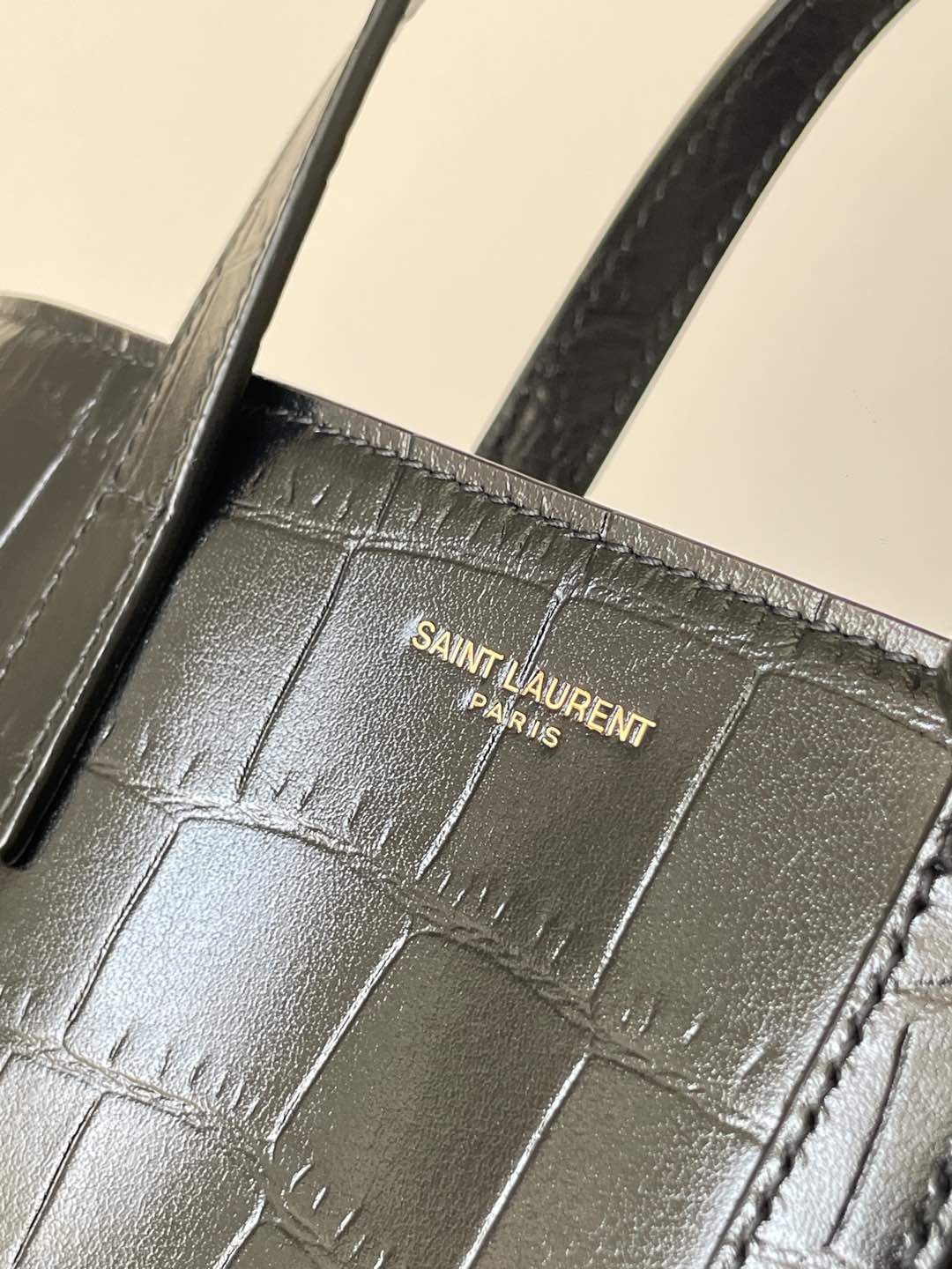 SAINT LAURENT YSL PARIS Mini Croc-Embossed Leather Tote Bag Black