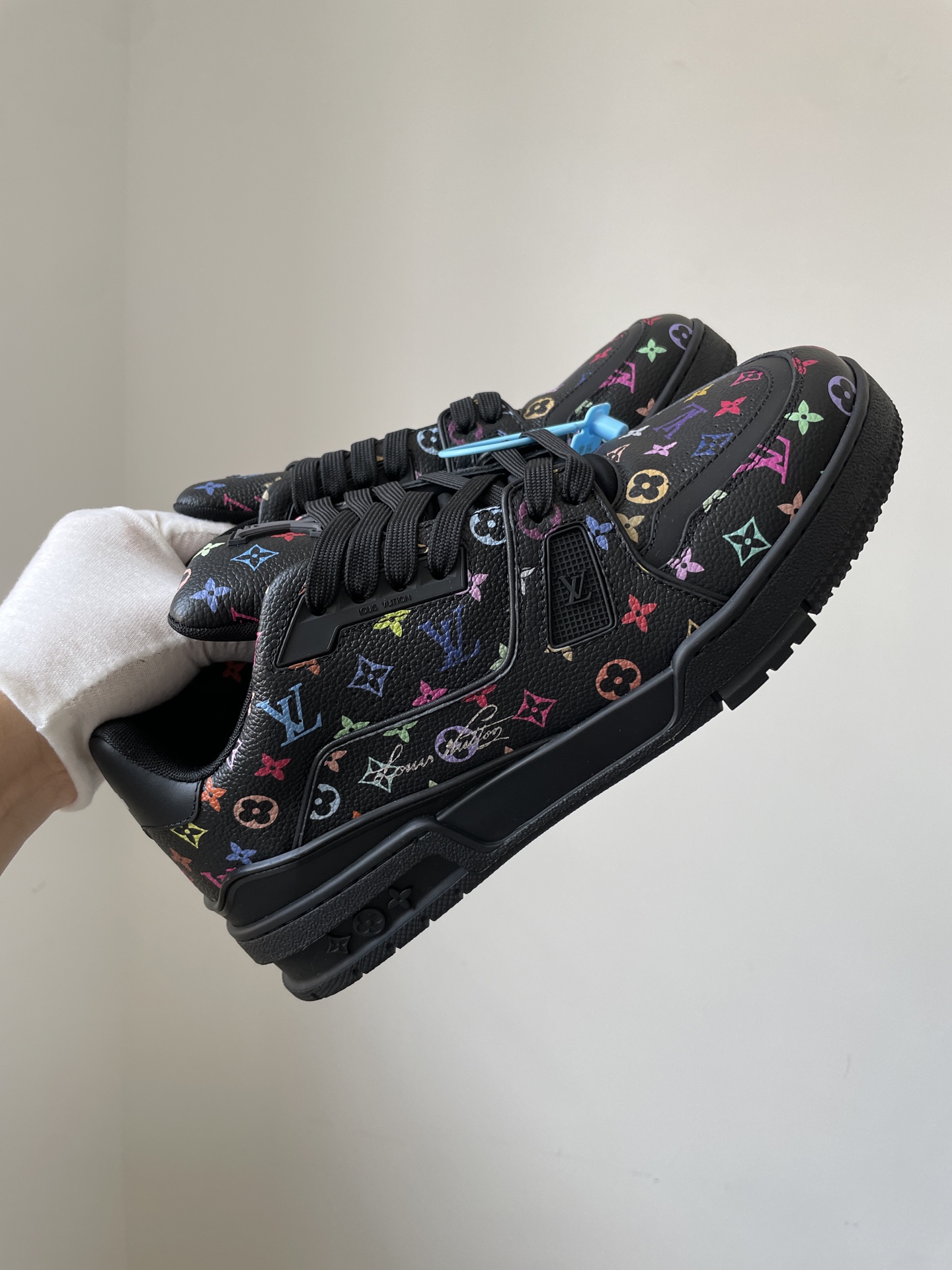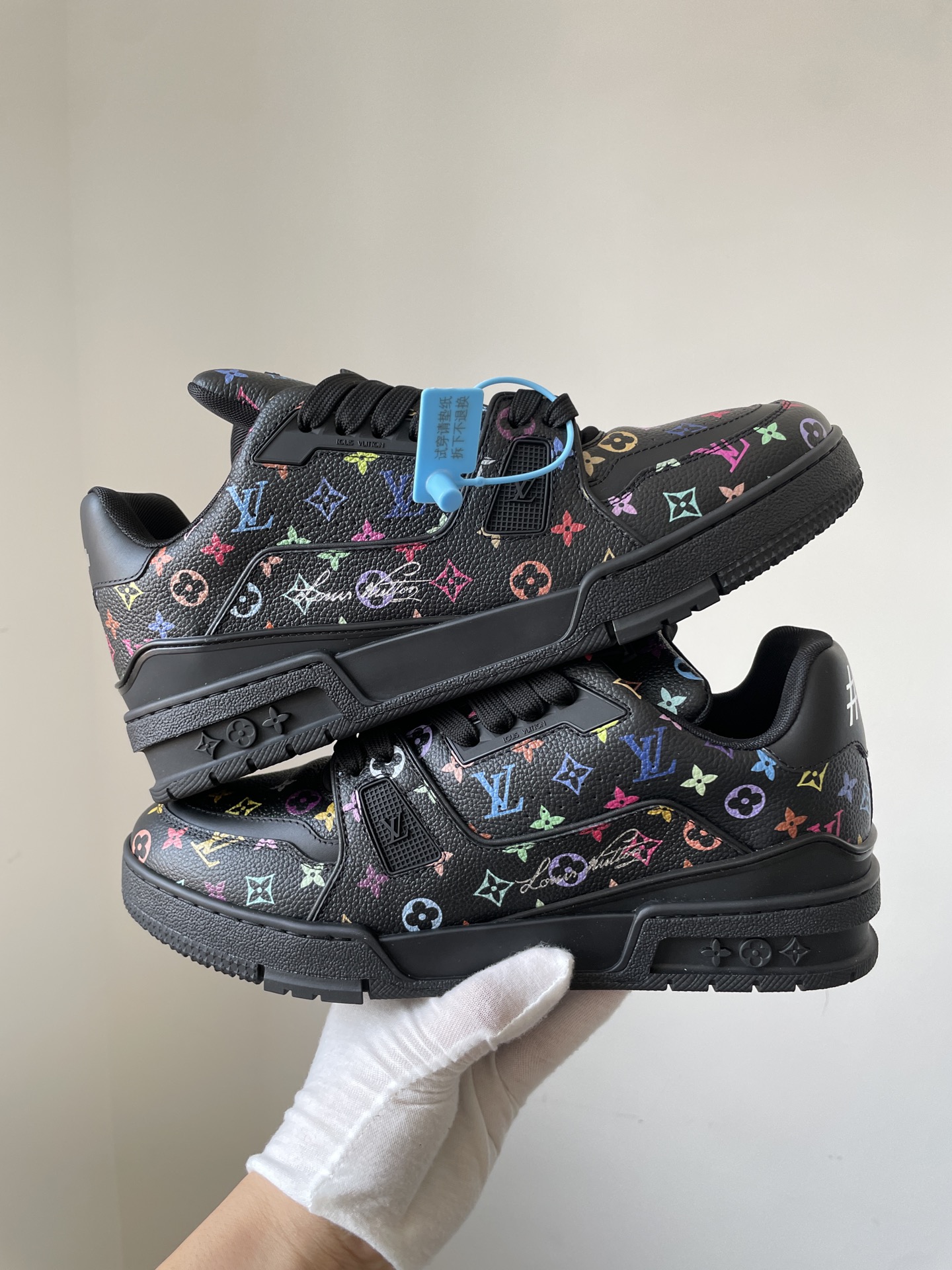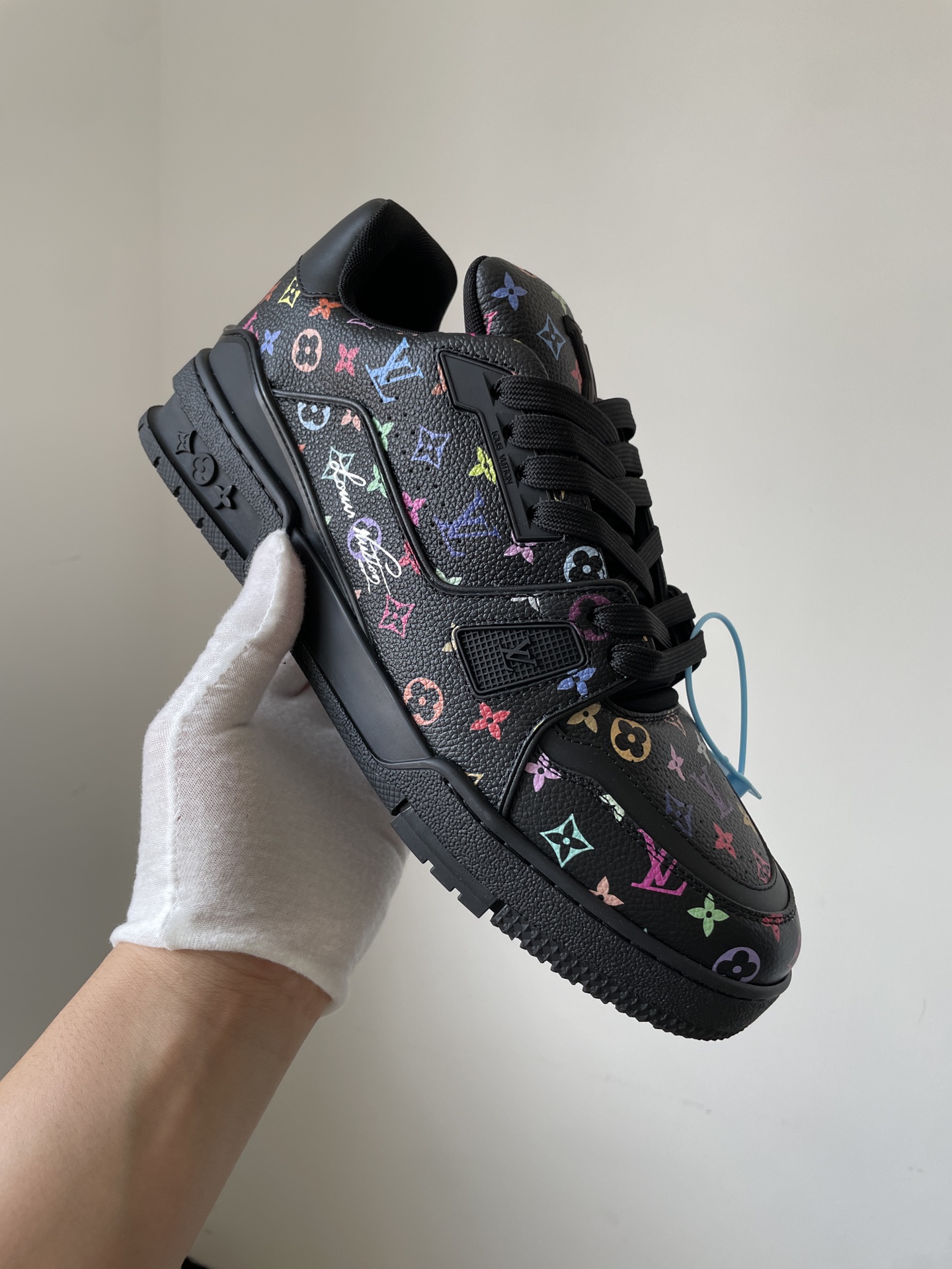 The Takashi Murakami x Louis Vuitton Trainer Black Leather Low-Top Sneakers showcases Louis Vuitton’s master craftsmanship and timeless design. Made from high-quality leather and modern materials, it offers durability, comfort, and a refined aesthetic suitable for both casual and fashionable wear.