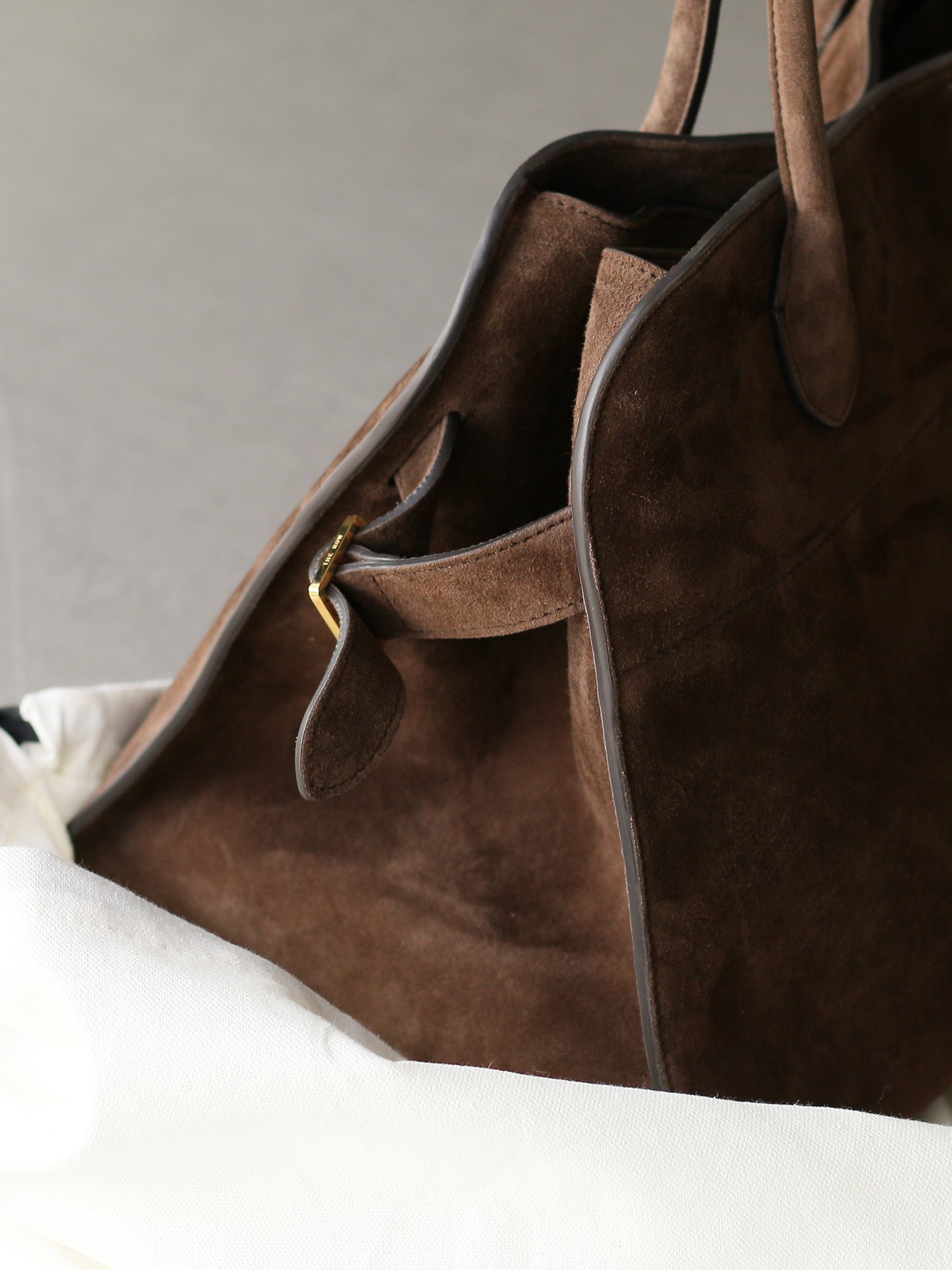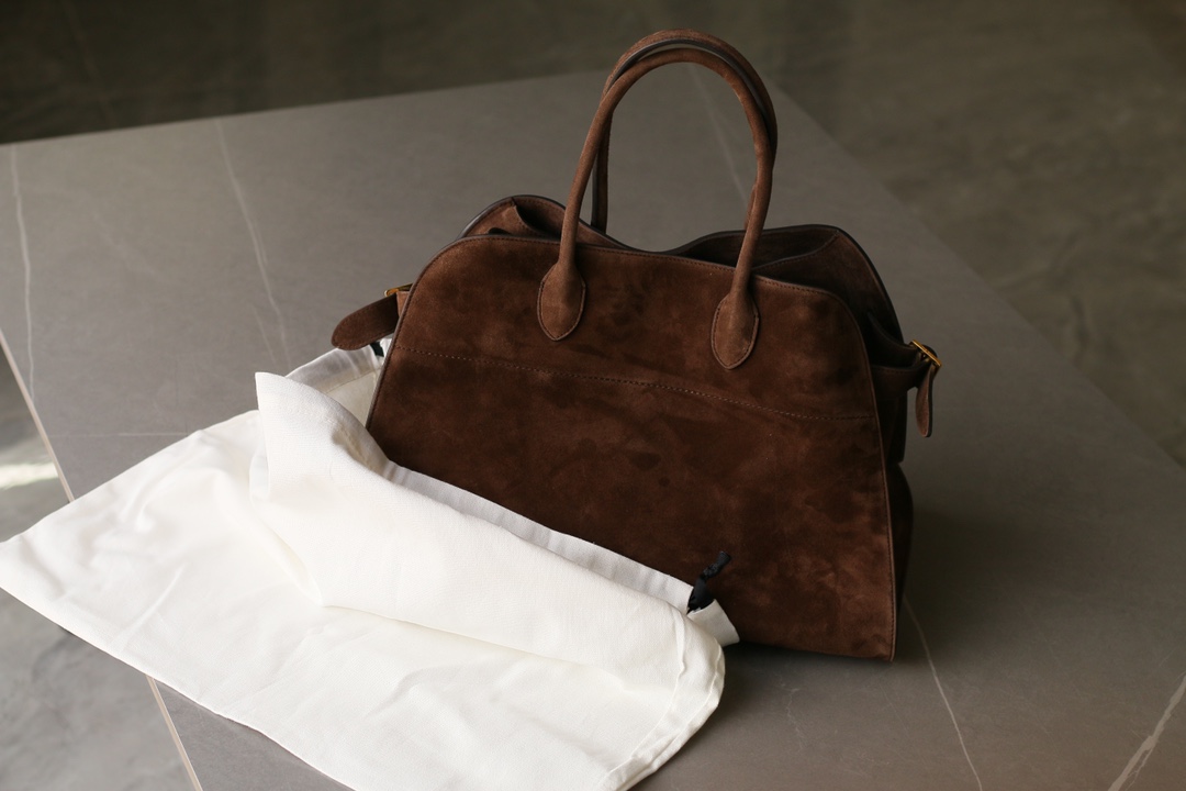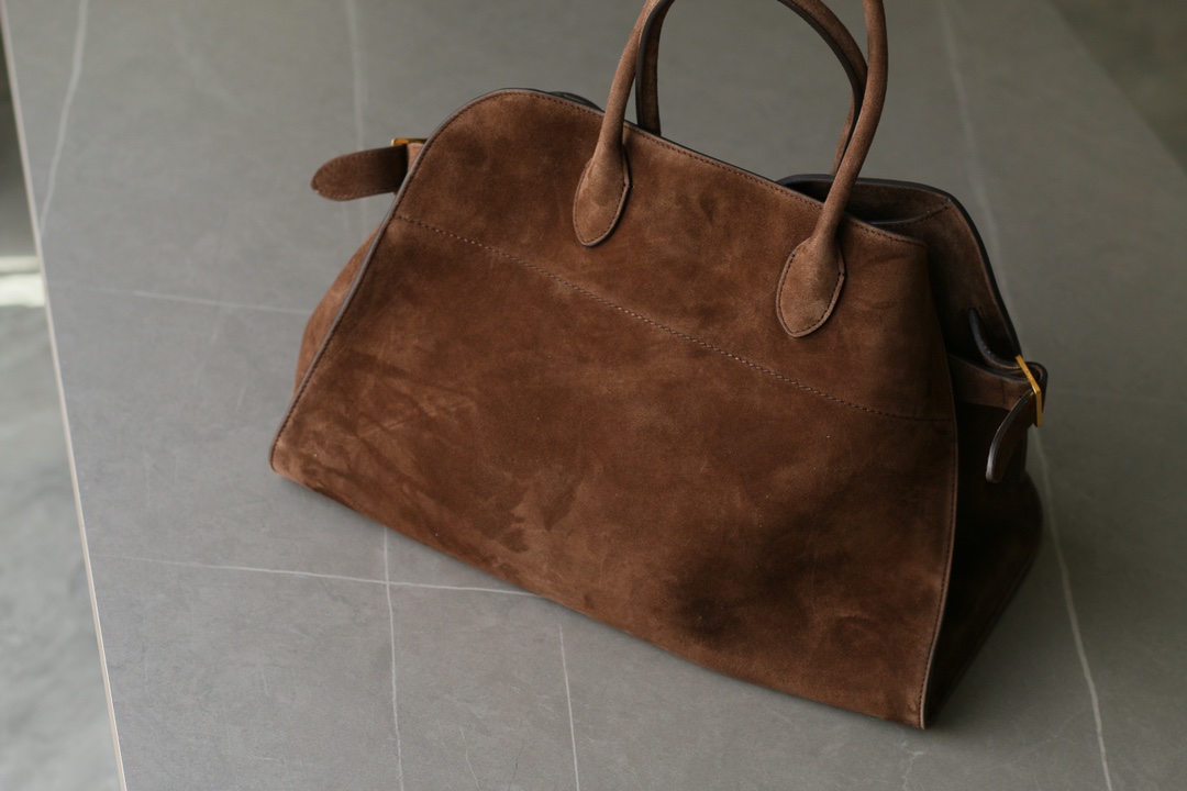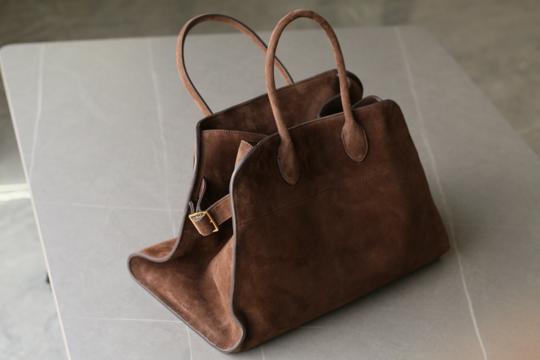 THE ROW Margaux 15 Suede Tote Bag with Buckle Closure – Mocha Brown