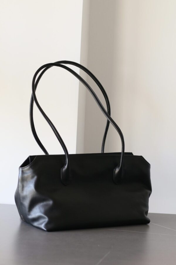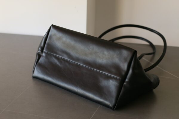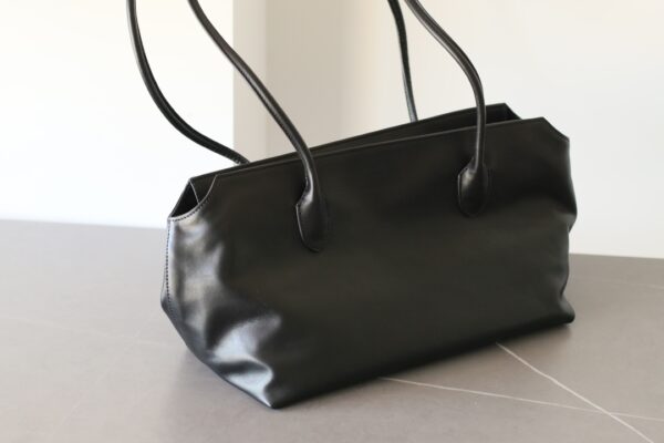 The THE ROW Terrasse Shoulder Bag embodies understated luxury and refined craftsmanship. Made from premium calfskin leather, this bag features a tubular leather shoulder strap and top zip closure for a modern silhouette. Spacious interior with soft lining keeps essentials organized. Dimensions: 32×18.5×21cm.