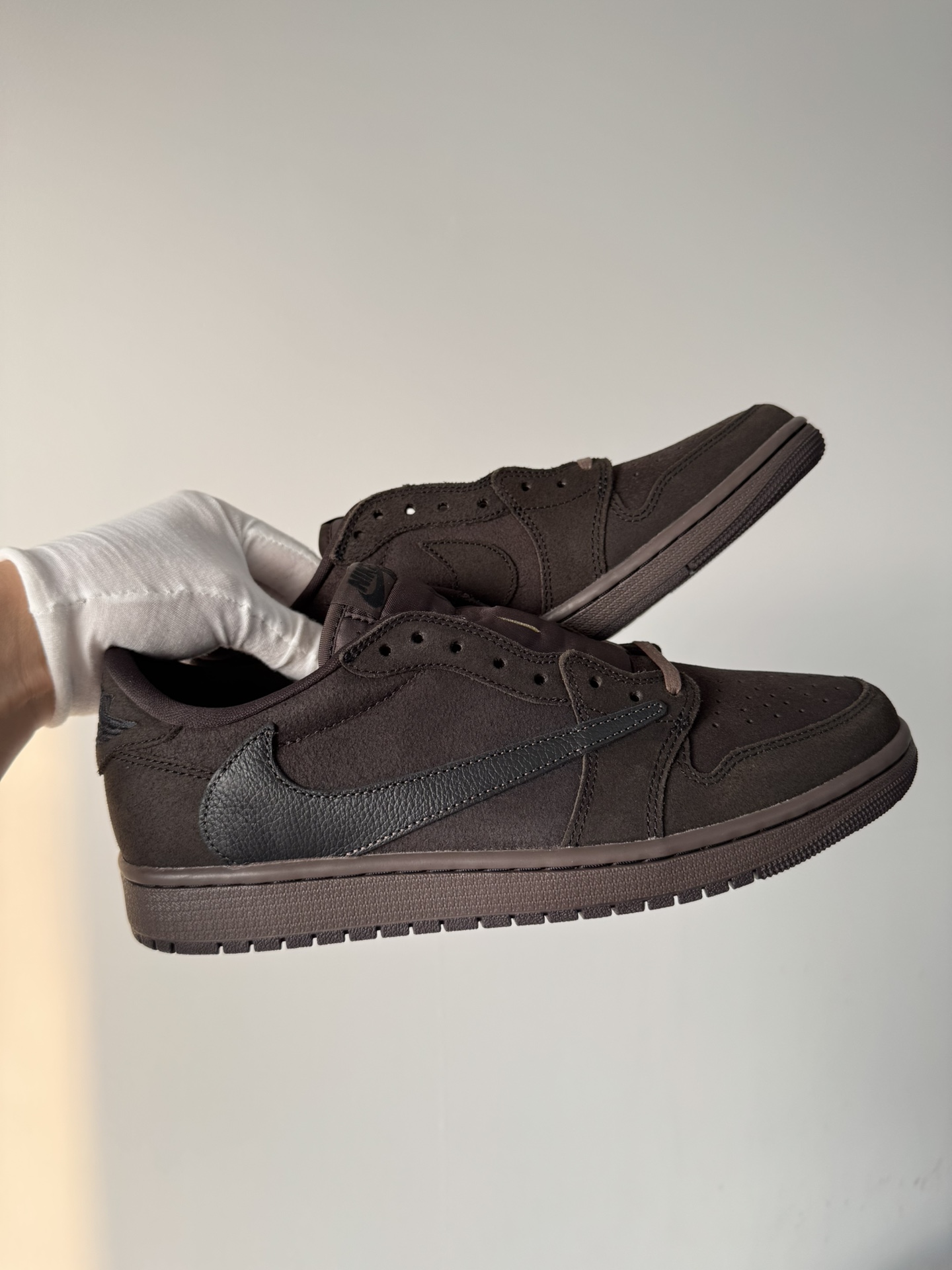 The Travis Scott x Air Jordan 1 Low OG “Velvet Brown” brings a bold twist to the iconic silhouette. Crafted with plush velvet and mocha-inspired tones, it offers both durability and comfort. The reversed Swoosh and earthy color palette embody Travis Scott’s signature aesthetic — a fusion of rugged streetwear and refined fashion sense.