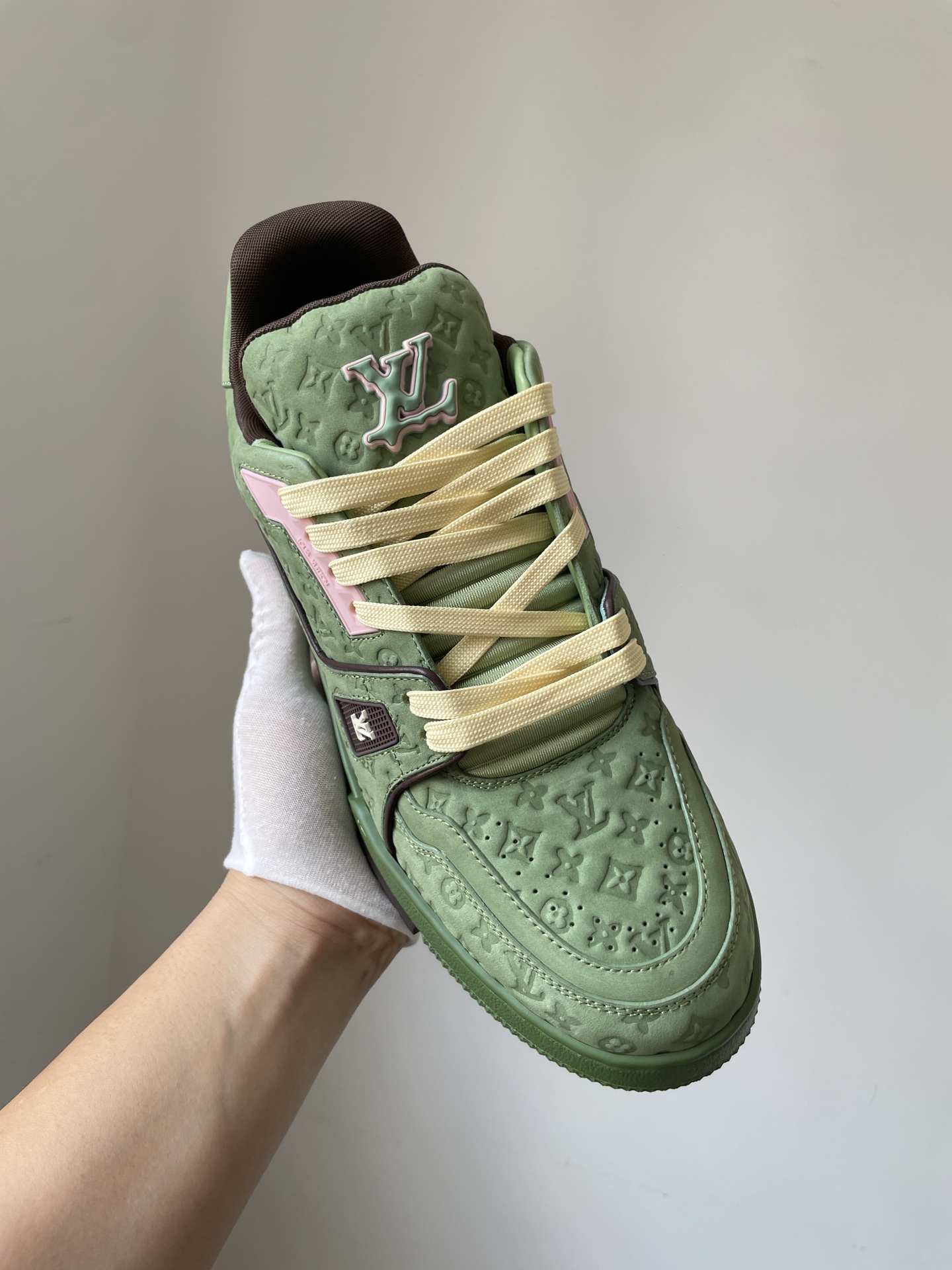 The Tyler x Louis Vuitton Trainer Green Low-Top Sneakers for Men showcases Louis Vuitton’s master craftsmanship and timeless design. Made from high-quality leather and modern materials, it offers durability, comfort, and a refined aesthetic suitable for both casual and fashionable wear.