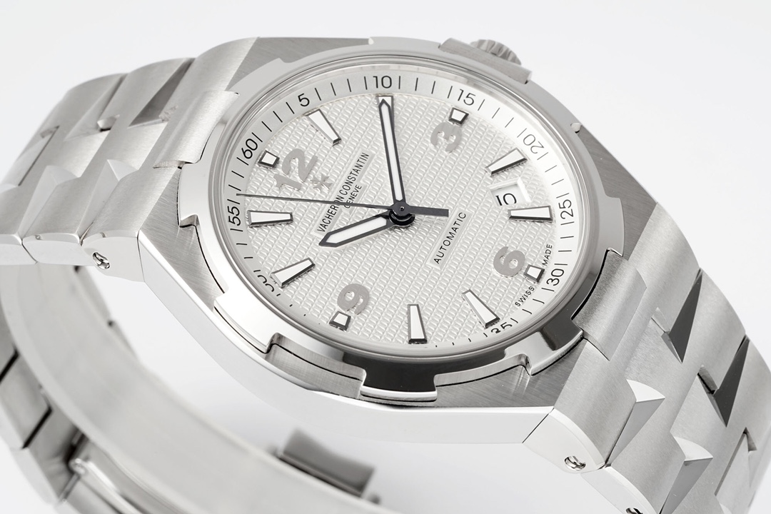 A classic white dial Overseas men’s automatic watch offering precision, style, and durability.